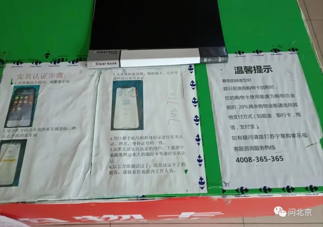 此后,家乐福方面的客服人员回电“问北京”记者表示,目前家乐福超市购物卡的使用方法有了新的变化。消费者需要通过拨打客服电话或者在还营业的家乐福门店现场实名手机号登记,通过七个工作日的审核后,可以按1:1的比例在店内使用购物卡结算商品,但额度限定每个月为500元。
