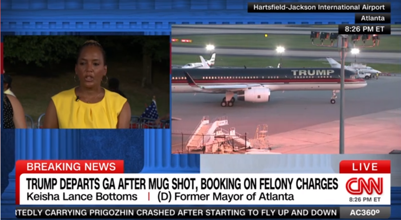 CNN直播画面显示,特朗普所乘专机准备离开亚特兰大机场