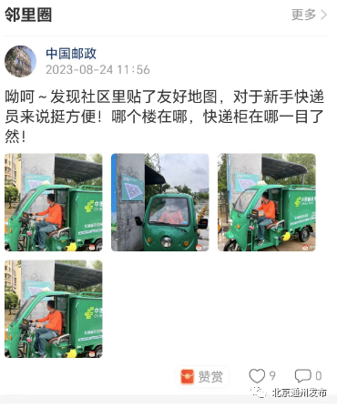 “发现社区里贴了友好地图,对于新手快递员来说挺方便!哪个楼在哪,快递柜在哪一目了然!”中国邮政快递小哥李永才来到玉桥南里社区时有了意外发现。