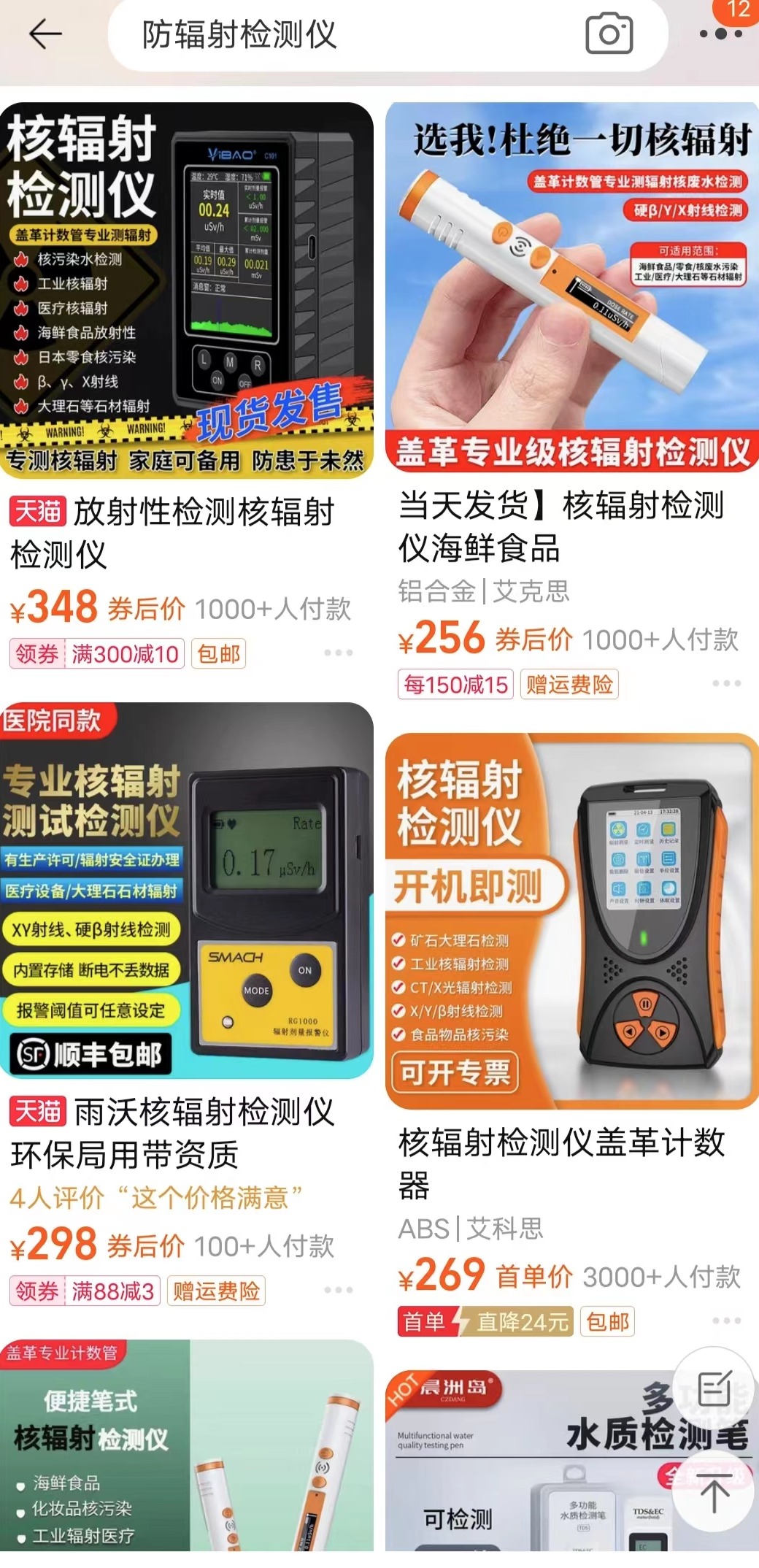 某平台上出售的防辐射检测仪。图据平台截图