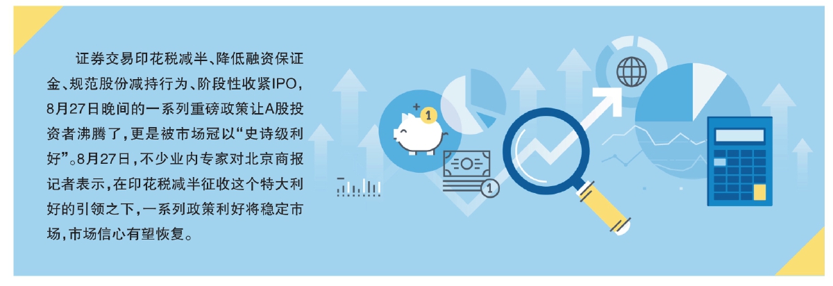 重磅利好终于来了。证券交易印花税降低一半征收,对于当前的A股市场具有重大利好支持,让市场信心超预期恢复,“政策底”转化为“市场底”的速度也会加快,不排除“市场底”已经探明的可能。