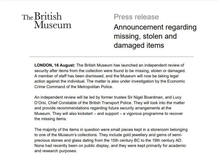 奥斯本称,“对于所有热爱大英博物馆的人来说,这是悲伤的一天,但我们决心纠正错误,并利用这次经验来建设一个更强大的博物馆。”