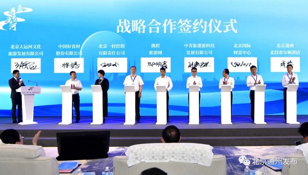 启动仪式上还介绍了2023年系列活动整体安排及亮点,发布了通州区升级版文旅线路、通州区大运河创新传播项目等内容,北京大运河文化旅游发展有限公司等一批文旅商体企业进行战略合作签约。