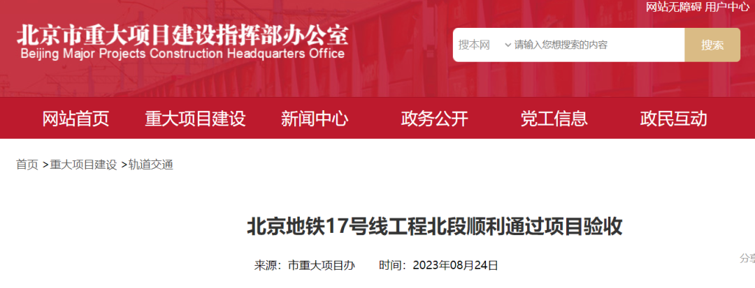 2023年8月24日,北京地铁17号线工程北段召开项目验收会,并顺利通过项目验收。