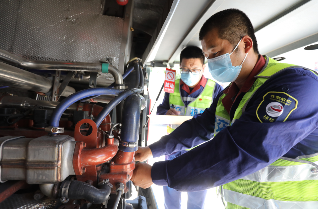 “师傅,车辆已经巡检完毕,您可以放心运营了。”8月29日,快速公交4线门头沟区龙泉西场站内,保修分公司七车间保修工张月恒、曹文星摘下禁动牌,关上机舱盖,合上车辆检测笔记本电脑对司机师傅说。