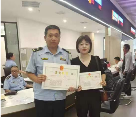 8月28日上午,北京暖帮数字科技有限公司的申请人张女士在天津市河东区市场监督管理局驻河东区政务服务中心窗口,领取到从北京邮寄过来的企业变更登记营业执照,朝阳区成功办理了全市首个通过“e窗通”平台“跨省通办”企业变更登记业务。