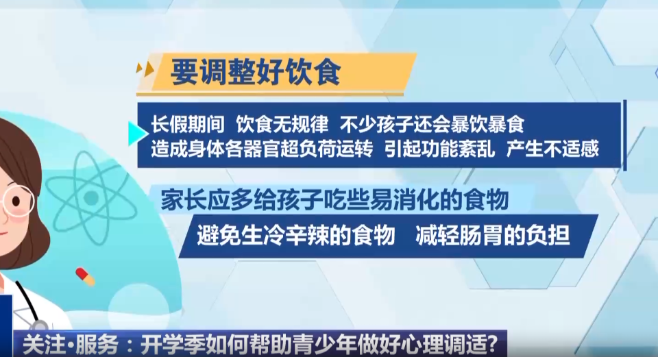 专家指出,开学季,孩子从熟悉而轻松的家庭环境,迅速转换到紧张学习的学校环境,在这个过程中,家长们可以尝试从饮食、睡眠等多个方面进行干预,帮助孩子缓解焦虑。