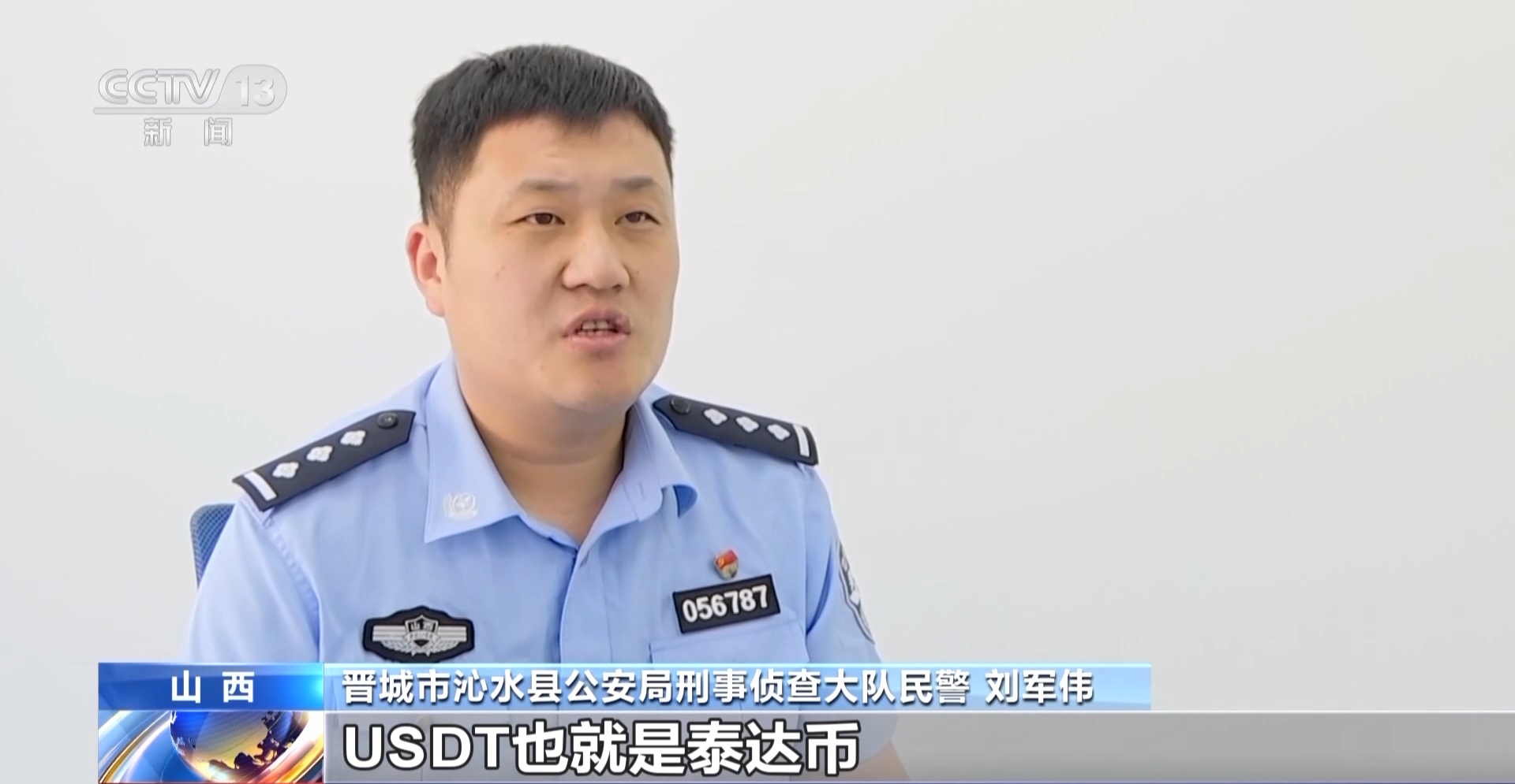 晋城市沁水县公安局刑事侦查大队民警 刘军伟:USDT也就是泰达币,是某外国公司发行的区块链货币,其以一比一的比例锚定美元,同时因其匿名性和去中心化的特点,成为虚拟货币跑分平台的首选。