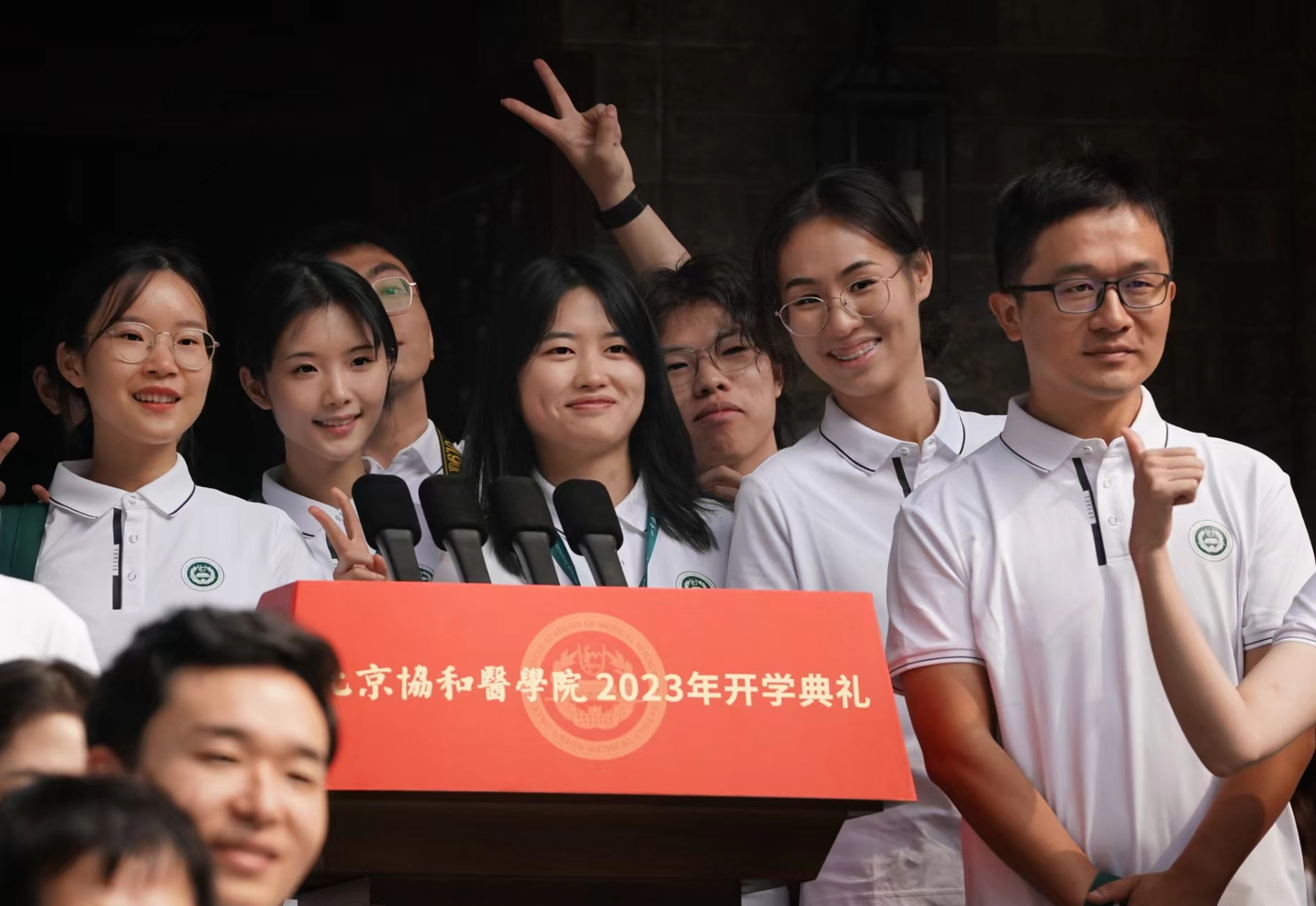 上午9时,微风轻拂,东单三条9号院内郁郁葱葱。新生们身穿白色衬衣,站立观礼,脸上洋溢着蓬勃朝气。“我们为什么选择医学?为什么继续坚持?每个人的故事和答案都会有所不同,但其根源都是心中的爱。”2023级内科学硕士新生代表徐昕媛说,一次次看到医者拼尽全力与死神赛跑,连续工作几小时不停歇,这种敬畏生命的品格激励她继续坚持走上医学之路。