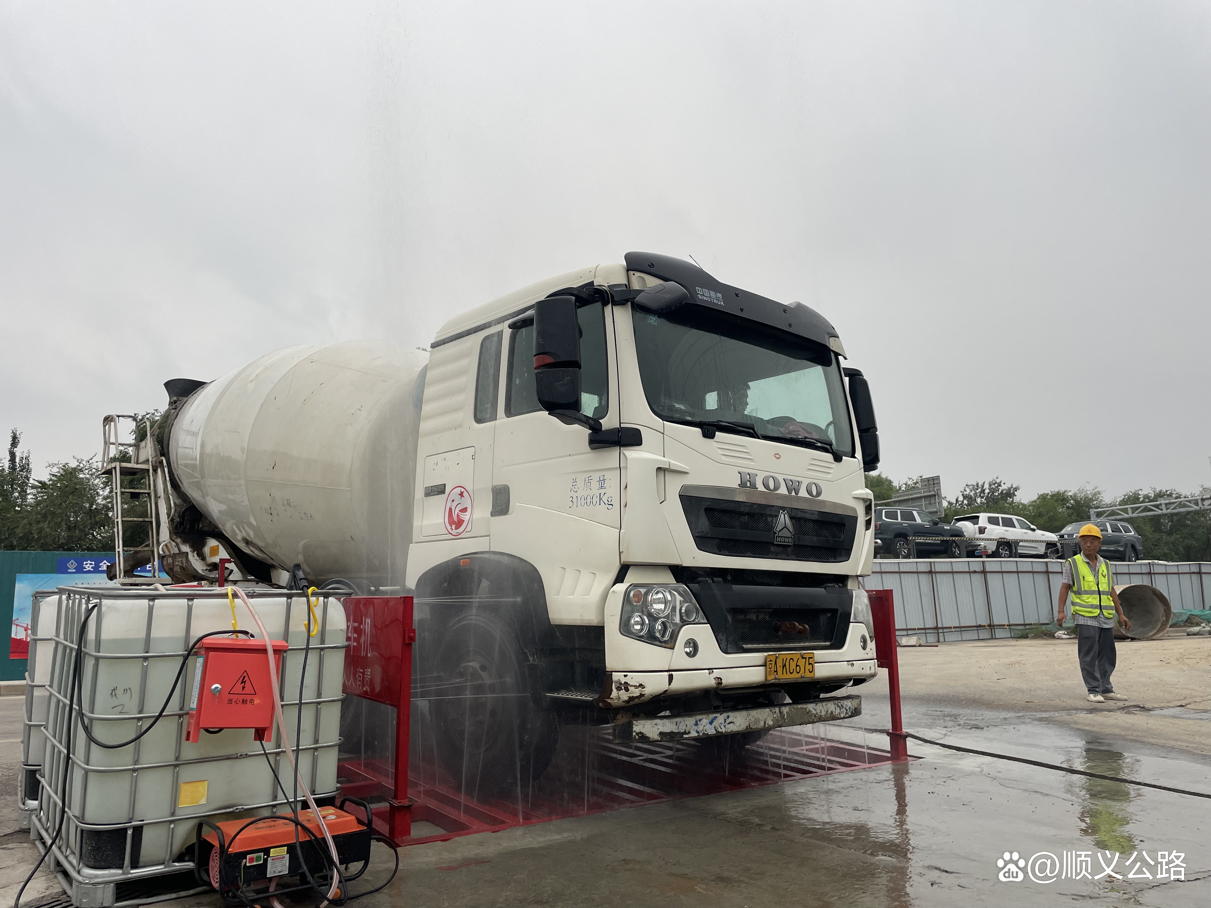 二是要求施工单位在工地出入口设置洗车池等临水设施,对工程车辆进行洗轮机冲洗和人工高压水枪冲洗,冲洗产生的泥水经三级沉淀池过滤后循环再利用,有效的减少了成本控制,降低环境污染。