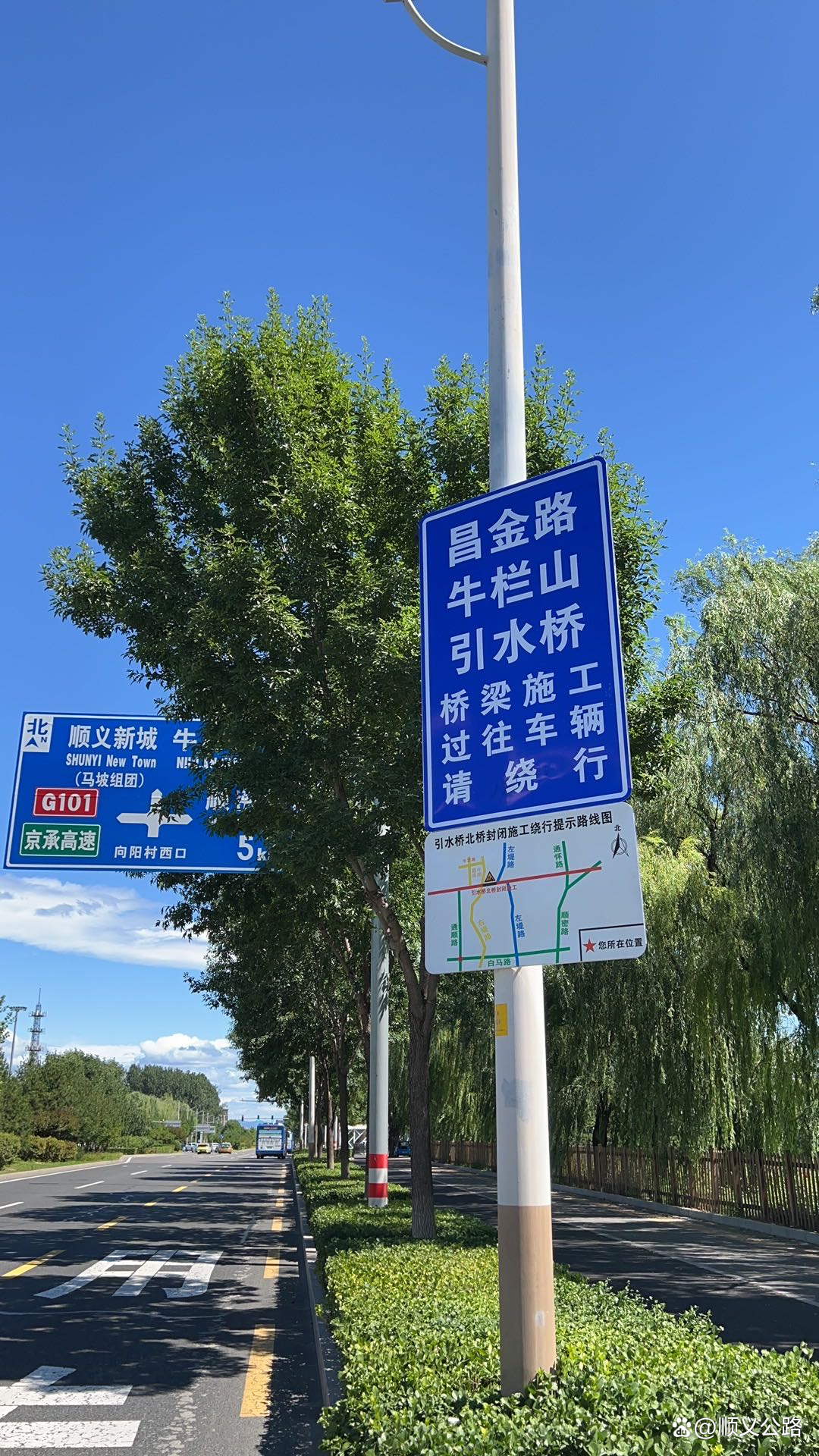 为最大程度减少施工对周边居民及环境产生的影响,顺义公路分局多方考虑,做足准备。一是汇同区交通支队、牛栏山镇、北小营镇等多次开展现场调研及研讨会,制订了切实可行的交通导改方案,分别在京沈线、白马路、左堤路、右堤路等远端各个路口设置了绕行提示牌,在施工现场设置连续封闭的围挡、施工标志、警示灯等设施,安排交通协管员进行秩序维护及指挥疏导便于过往车辆绕行,减少因封桥施工带来的车辆拥堵。