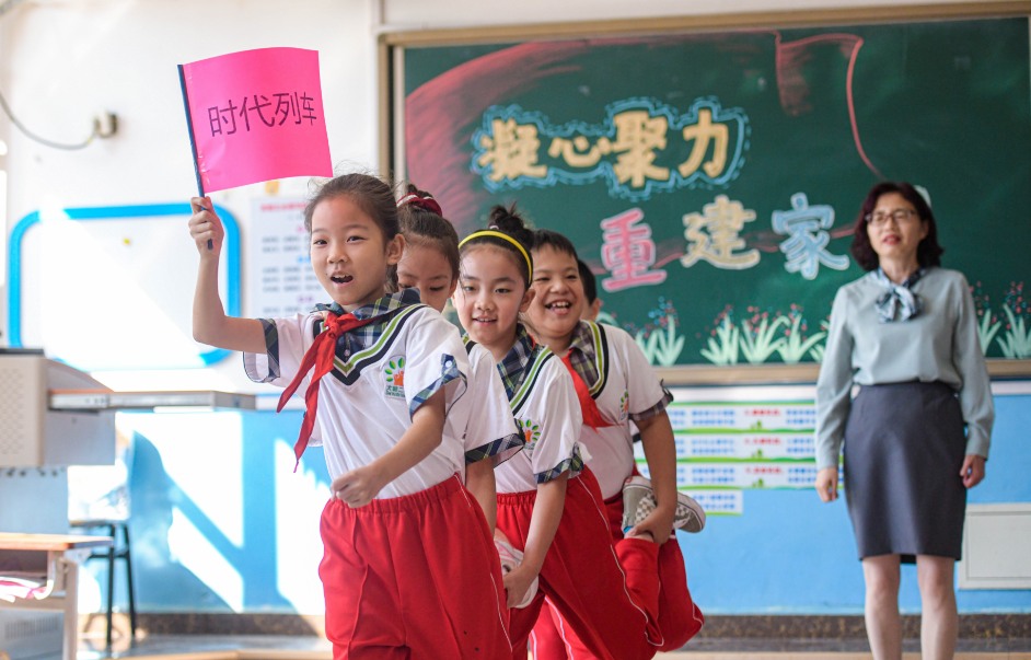 化身抗洪抢险的小战士,书包当作沙袋,桌椅摆成“断桥”,有序列队蹚过“河流”,团结协作搭建“堤坝”……在门头沟区大峪第二小学,一堂生动的开学第一课在四年级七班教室开讲,学生们通过“抗洪抢险”“时代列车”等互动小游戏,感受团队协作、重建家园的重要意义,以积极心态投入新学期的学习生活。