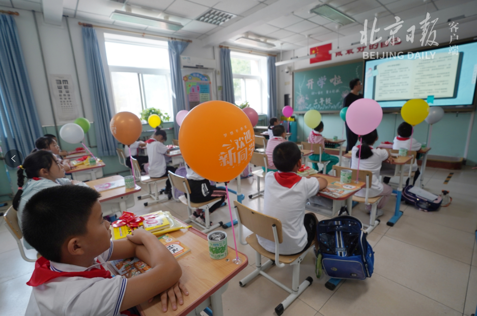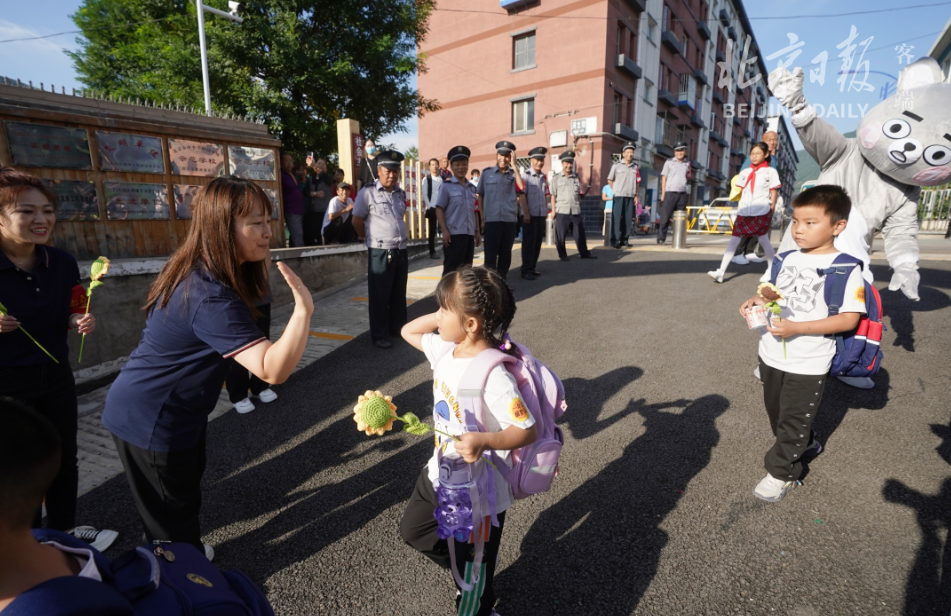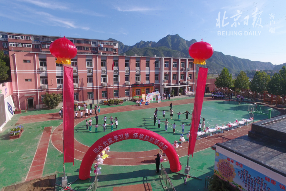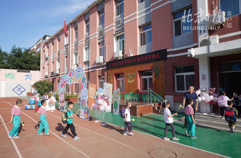 9月1日上午,门头沟区王平村中心小学的操场上,洋溢着新学期的氛围。红色的充气拱门分外引人注目,“同心共筑学习梦,扬帆起航新征程”的标语道出了全校师生对于新学期的期待。