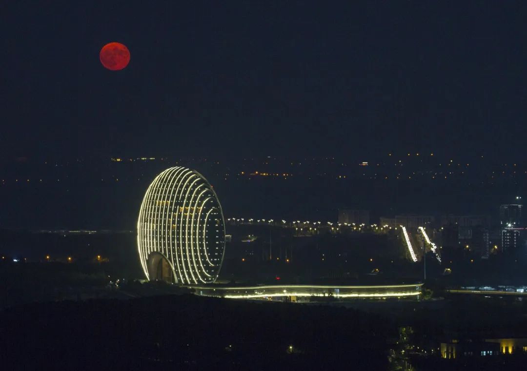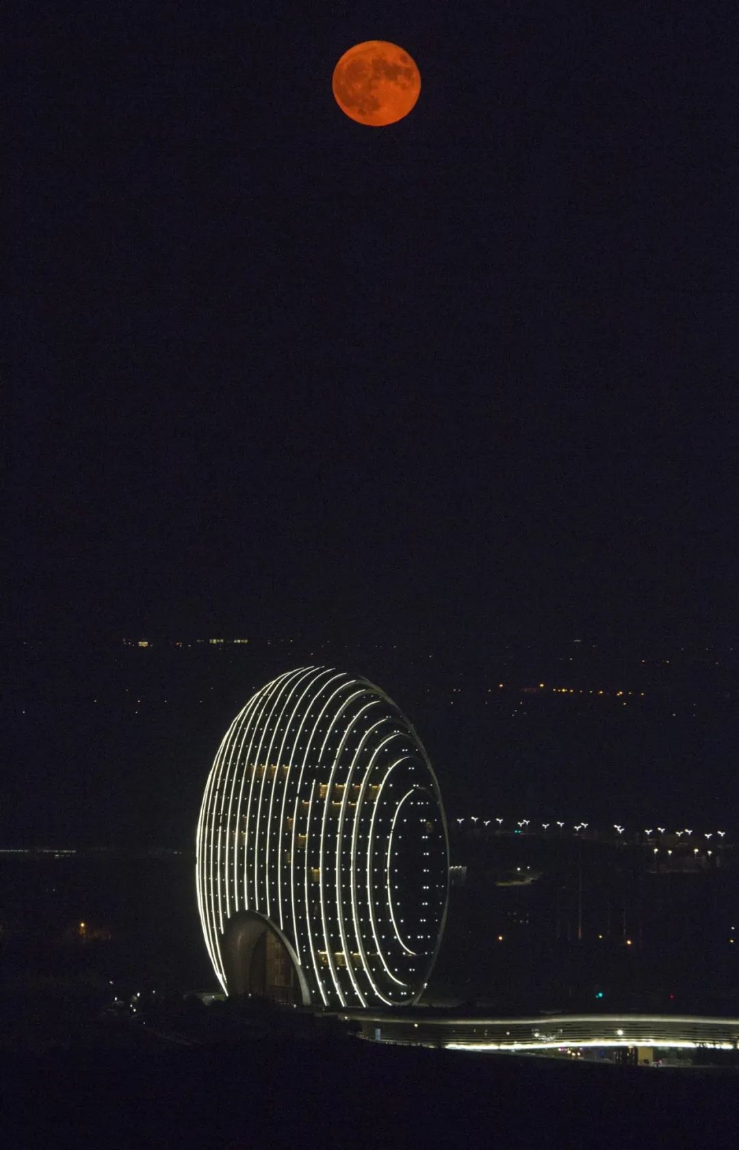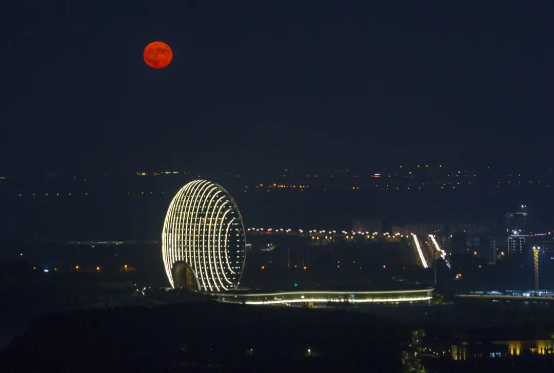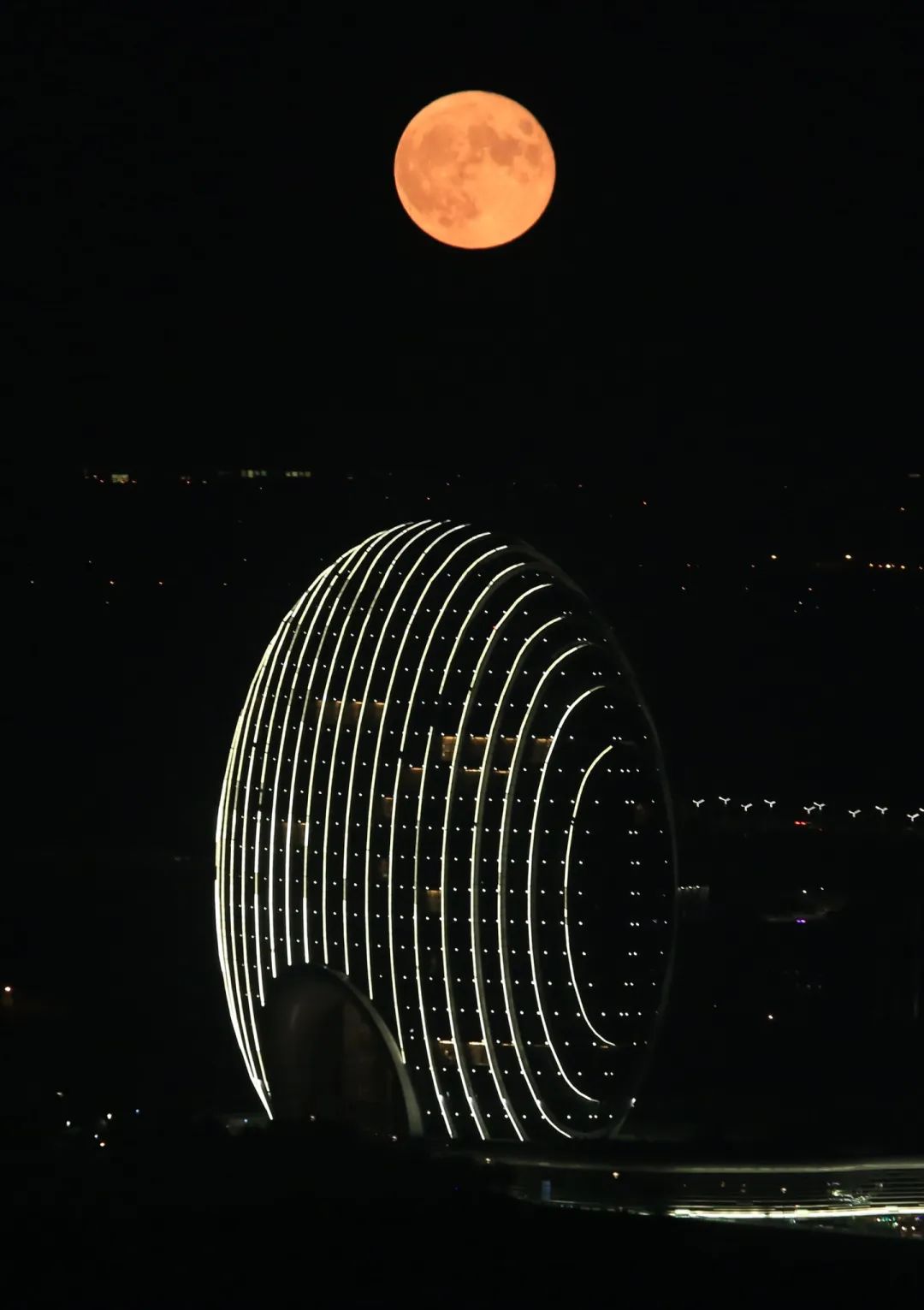 8月31日晚本年度的最大满月,点缀在怀柔上空和“鸟蛋”来了个合影~