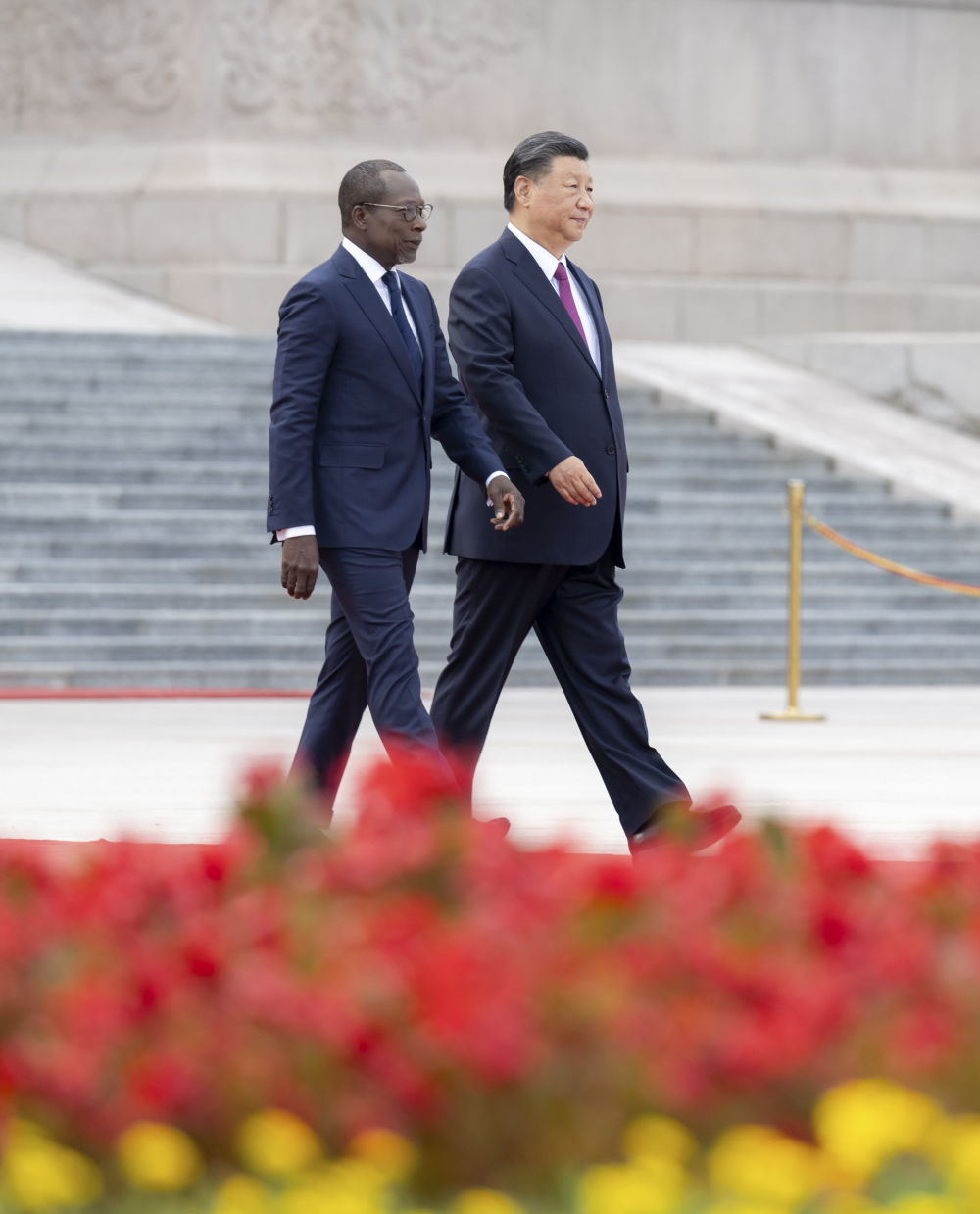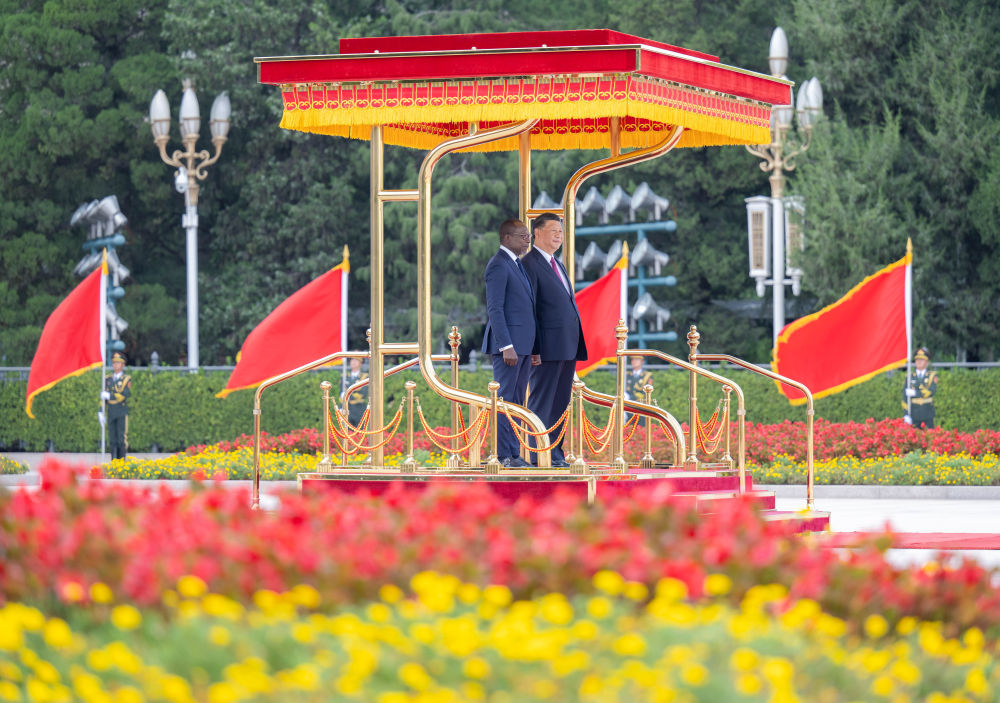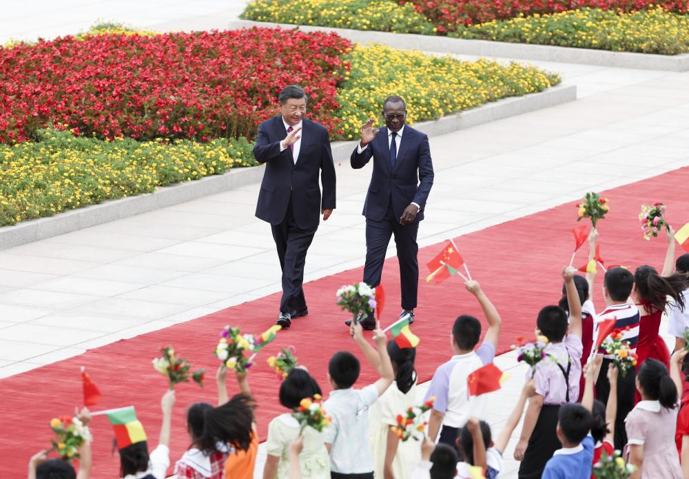9月1日下午,国家主席习近平在北京人民大会堂同来华进行国事访问的贝宁总统塔隆举行会谈。这是会谈前,习近平在人民大会堂东门外广场为塔隆举行欢迎仪式。新华社记者 翟健岚 摄