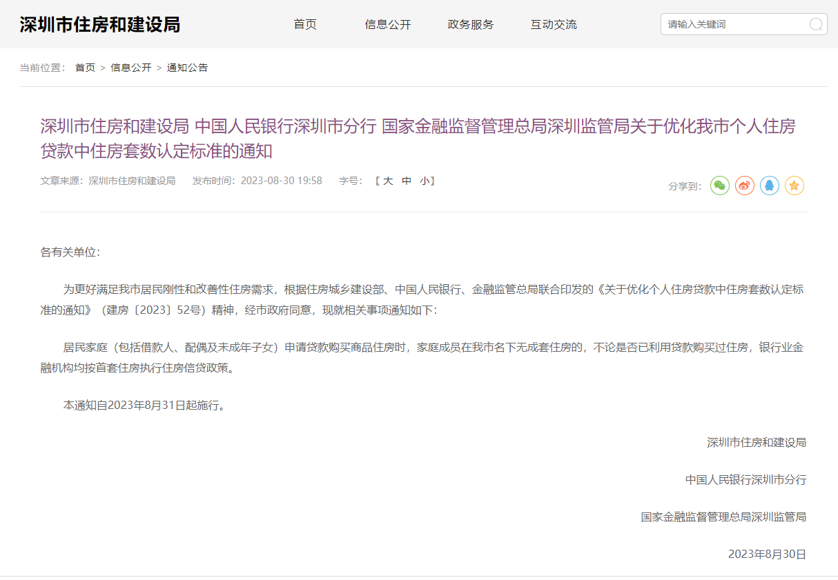 8月30日,广州率先宣布执行首套房贷款“认房不用认贷”政策。当晚,深圳发布通知,宣布自8月31日起实施“认房不认贷”政策。