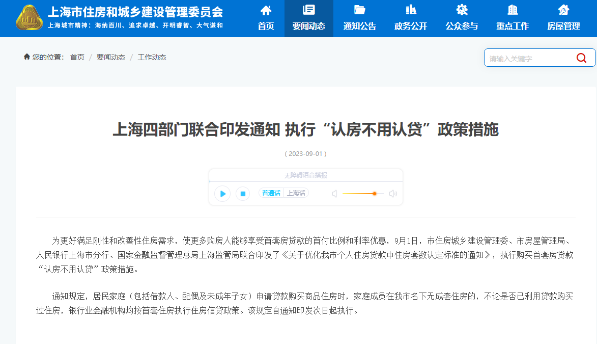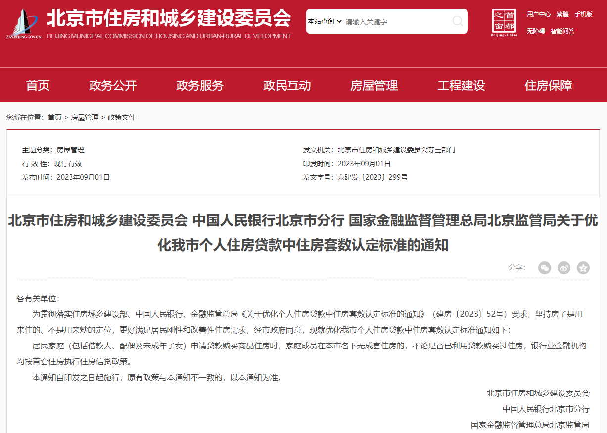 9月1日,上海发布通知,宣布执行购买首套房贷款“认房不用认贷”政策。同日晚,北京宣布自即日起执行“认房不认贷”。