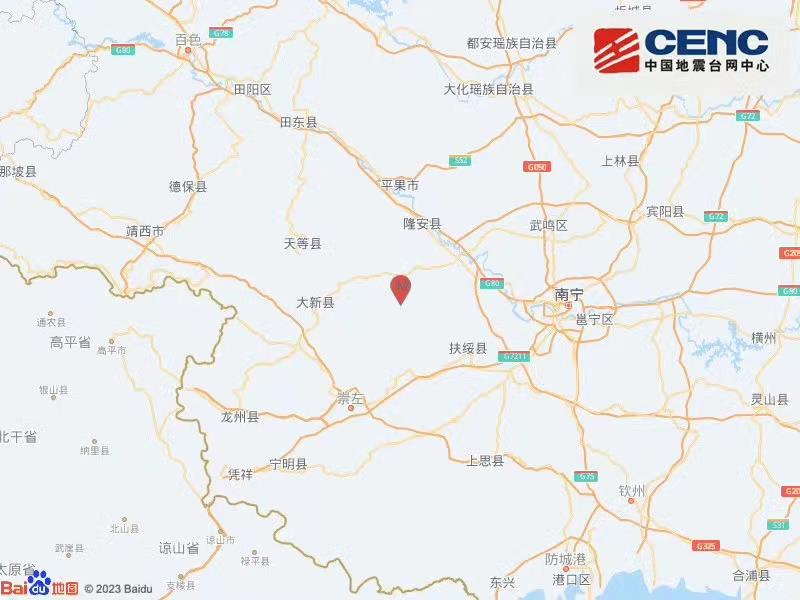广西崇左市江州区发生3.3级地震
