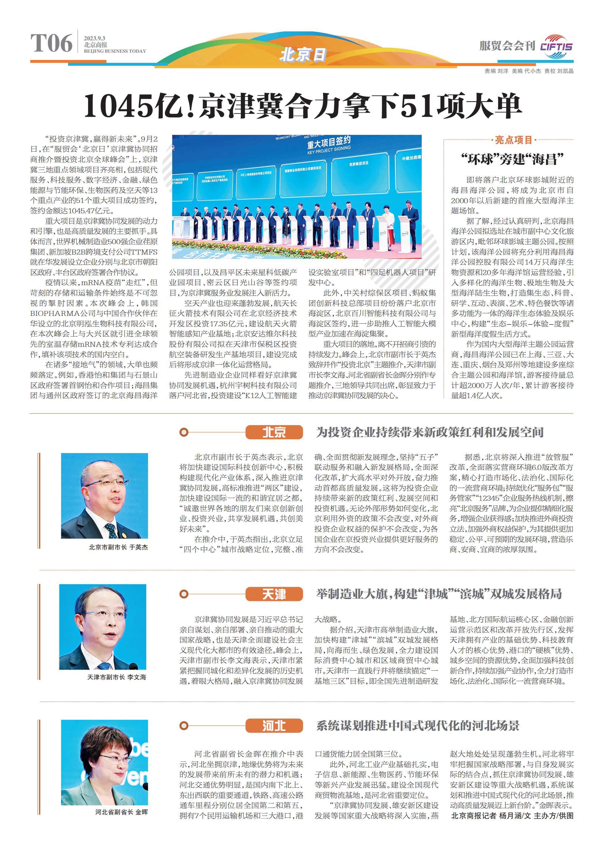京津冀协同发展是习近平总书记亲自谋划、亲自部署、亲自推动的重大国家战略,也是天津全面建设社会主义现代化大都市的有效途径。峰会上,天津市副市长李文海表示,天津市紧紧把握同城化和差异化发展的历史机遇,着眼大格局,融入京津冀协同发展大战略。