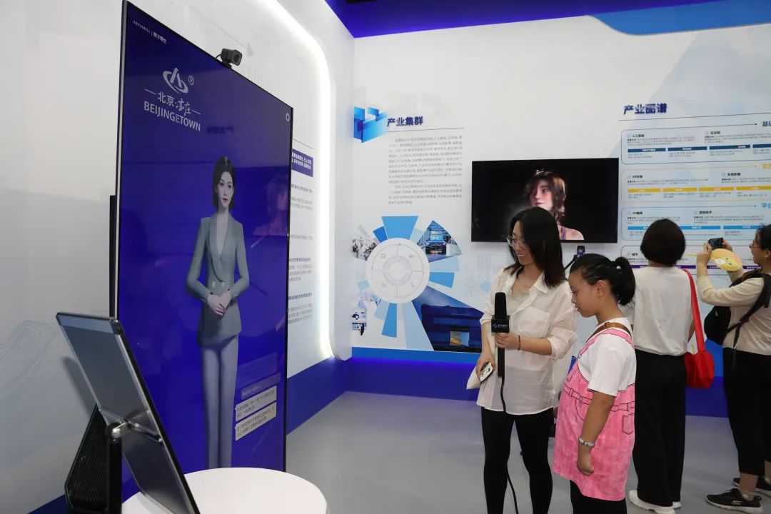 据现场工作人员介绍,该数字人是通过智能计算及创新大模型技术,1:1真实还原真人形态打造的更智慧、更专业的虚拟讲解员分身。前期,通过收集和整理北京亦庄万人数据,进行数据预处理,为数字人提供多样化的外貌和行为。最后,利用大型计算机和大模型技术来训练数字人,通过不断迭代学习和优化,模拟人类的学习方式,最终生成高仿真的数字人,动作、表情、声音都无限逼近真人。