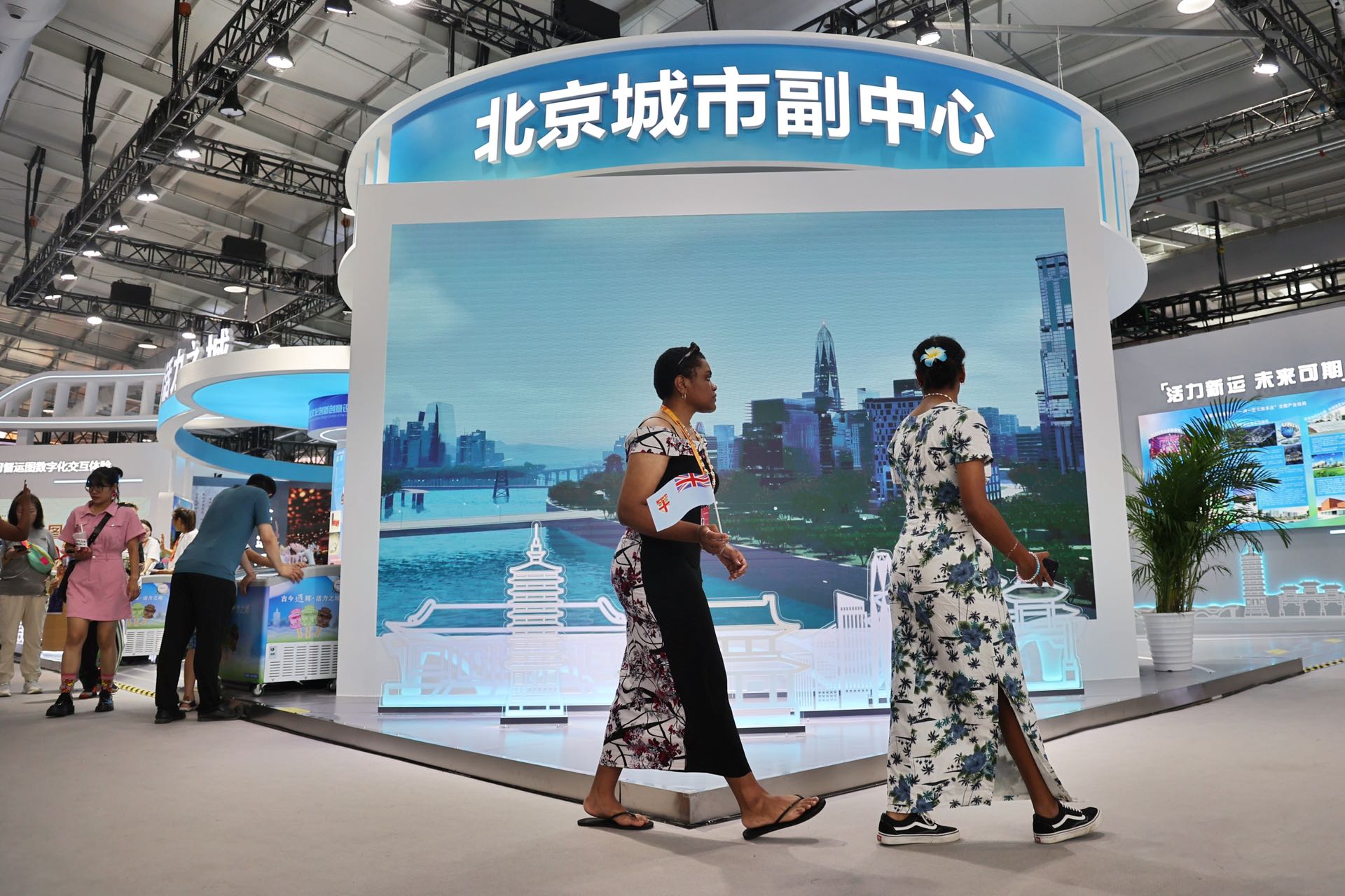 文旅专题展里,东城区借助人工智能等新技术展示了壮美中轴线、恢弘的前门五牌楼、“水穿街巷”的玉河古道风光,西城区展示了“蒙藏学校”“古建馆(庆成宫腾退项目)”“泰安里”“京报馆”等文物活化利用项目,大兴展区更是将“皇都第一行宫”搬上服贸会,为市民观众带来了多元丰富、新奇有趣的文旅新体验。