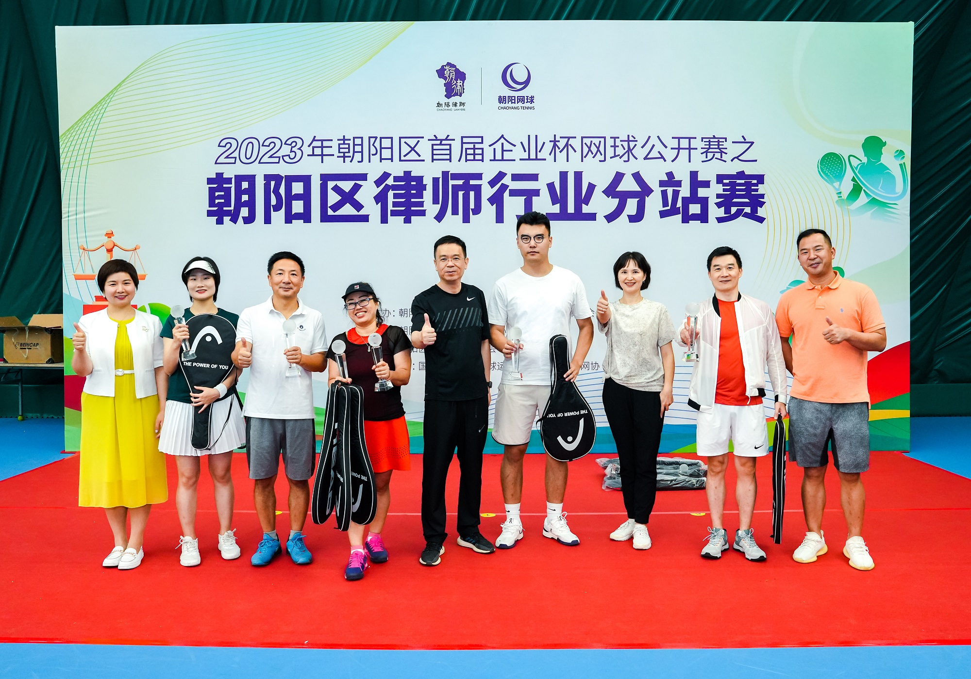 最终,男子双打冠军由马伯文/沈岚获得;刘品/王闻君获得女子双打第一名;刘品/马伯文获混合双打第一名;马伯文夺得男子单打第一名;刘品获女子单打第一名。朝阳区律师协会副会长万欣、会员委主任袁坤、副主任张金盈、杜昆志和北京市朝阳区网球运动联合会常务副会长杨建群、秘书长唐光华一起为选手颁奖。