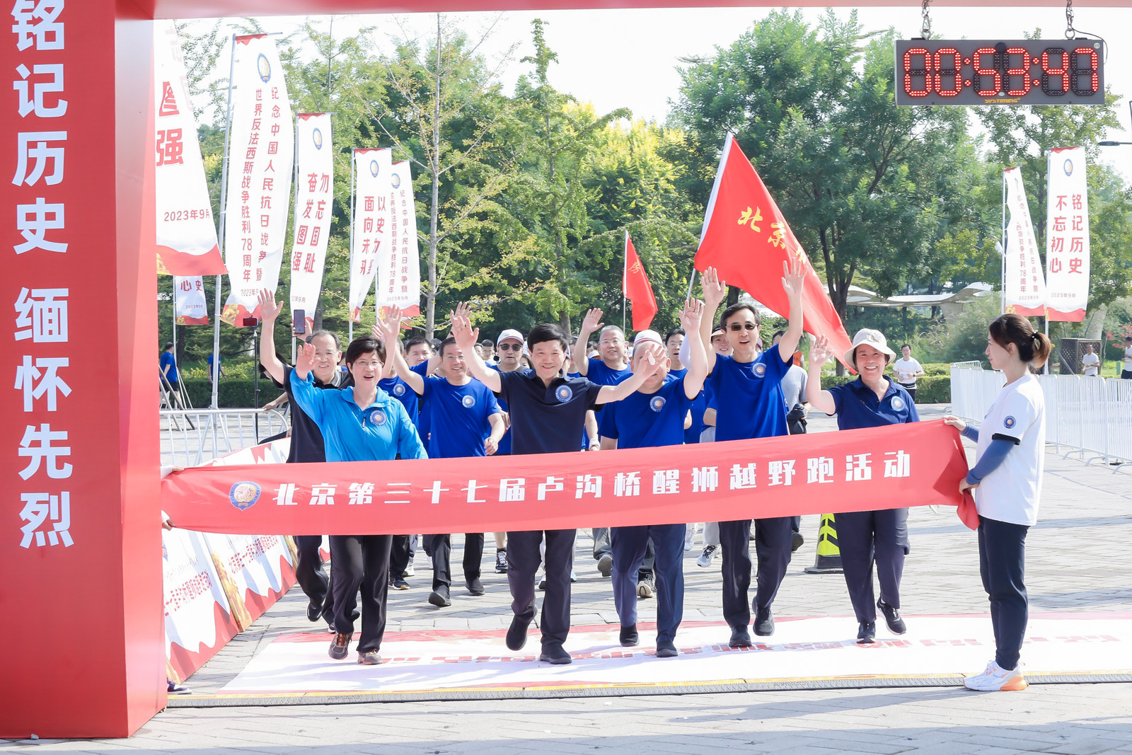 为纪念中国人民抗日战争暨世界反法西斯战争胜利78周年,9月3日上午,北京第三十七届卢沟桥醒狮越野跑活动在北京园博园举行。