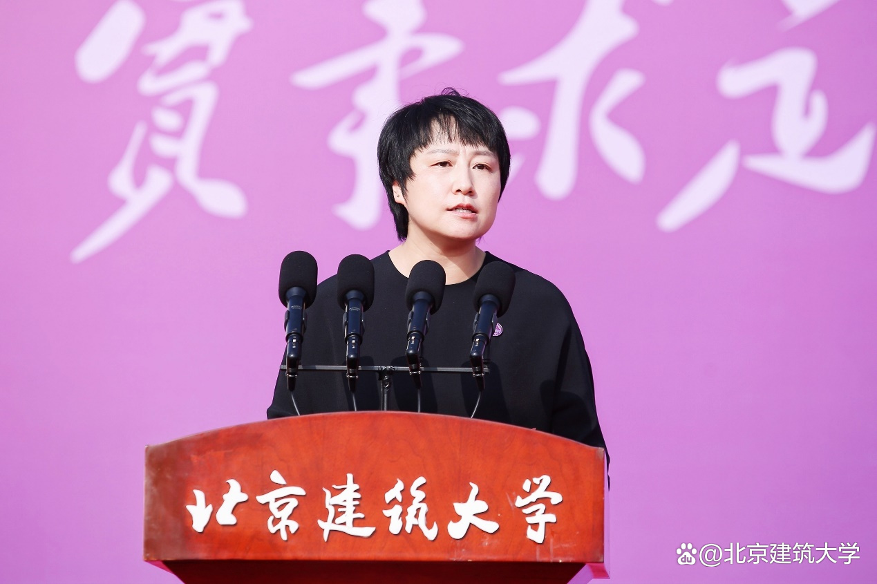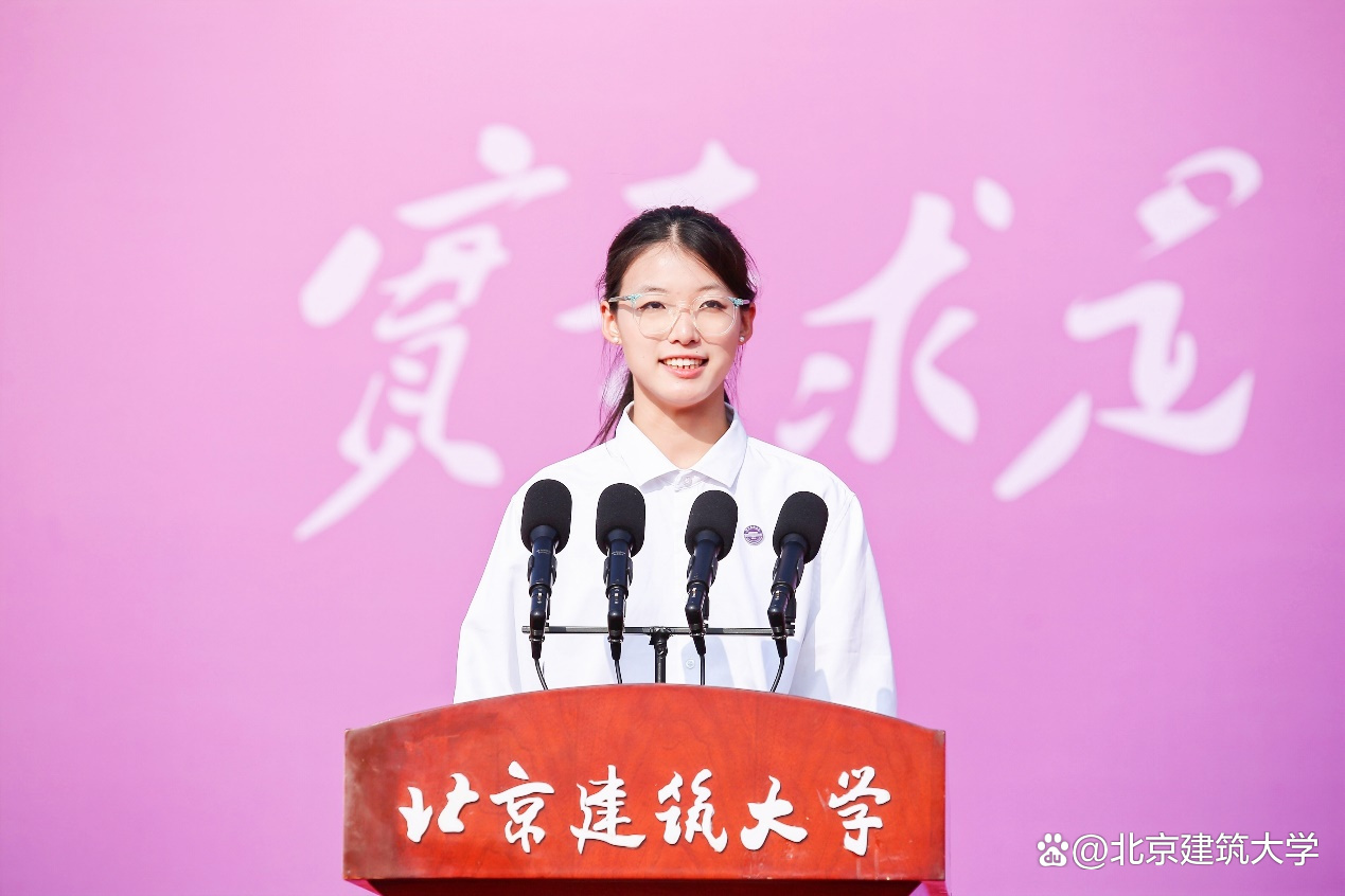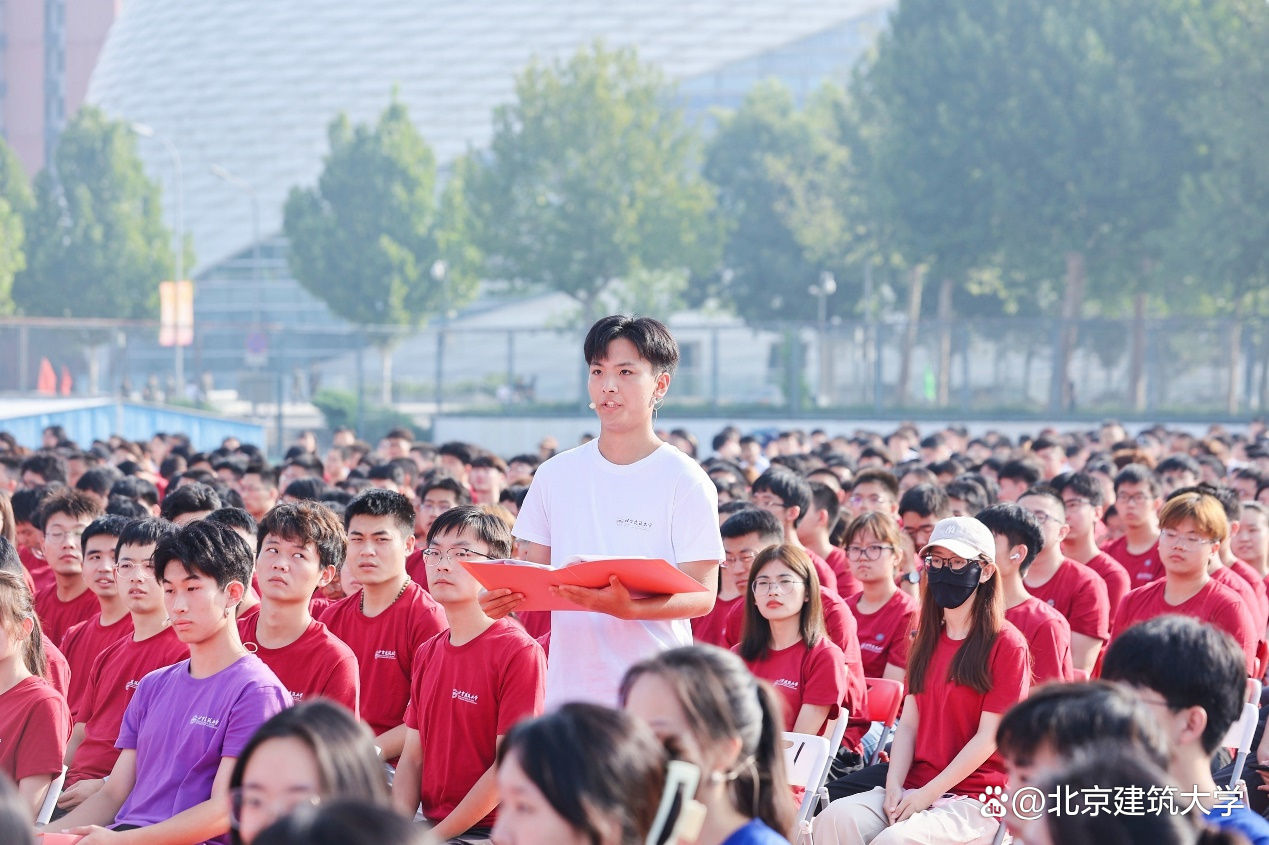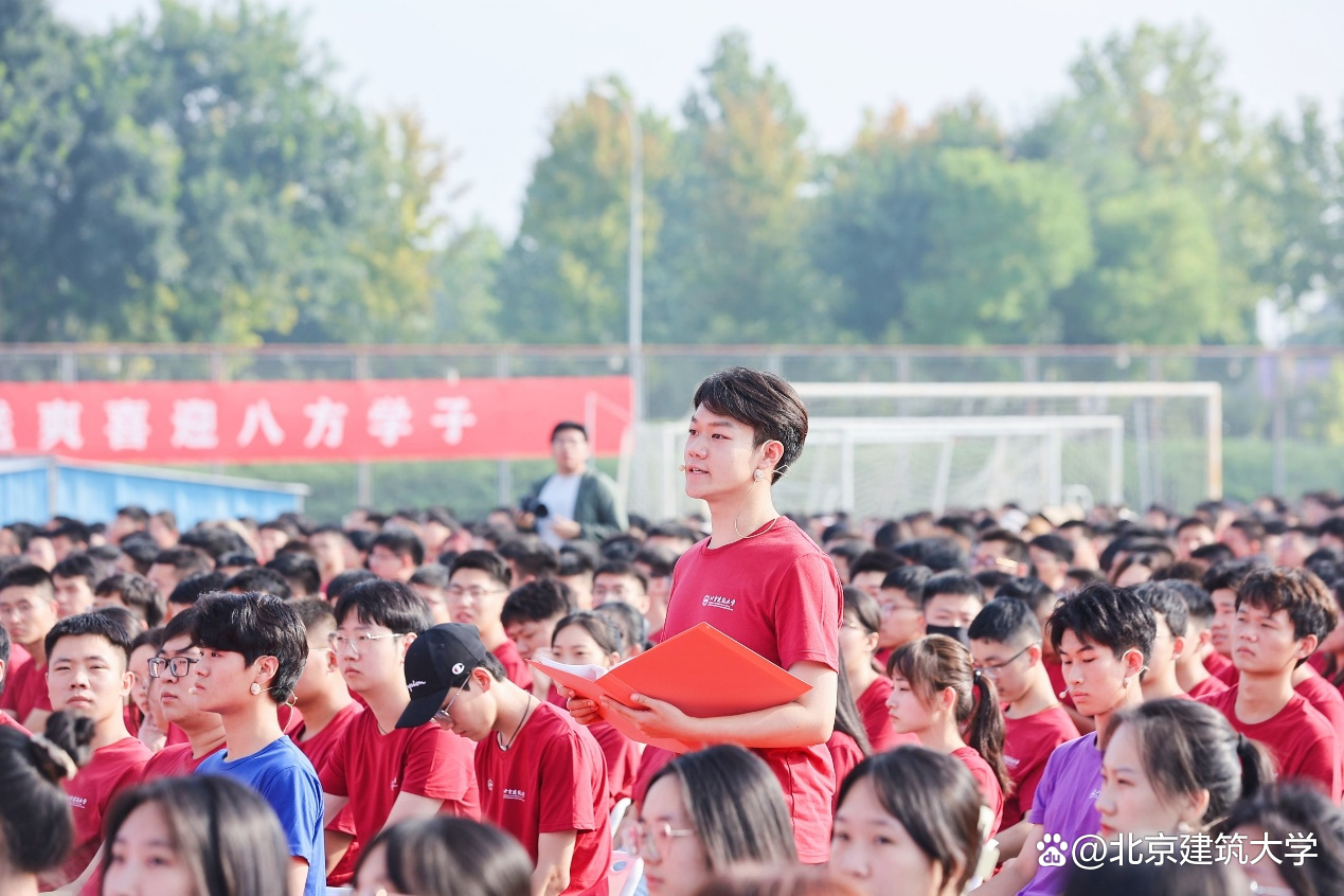 他代表全体师生员工向来自五湖四海的同学们表示热烈的欢迎,并对新生们寄予厚望,“未来的几年,我们将共迎风雨,同赏晴空。你们将是北建大精神的新担当和新传承,你们将是北建大力量的新希望和新活力,愿你们在北京建筑大学度过无悔的青春!”