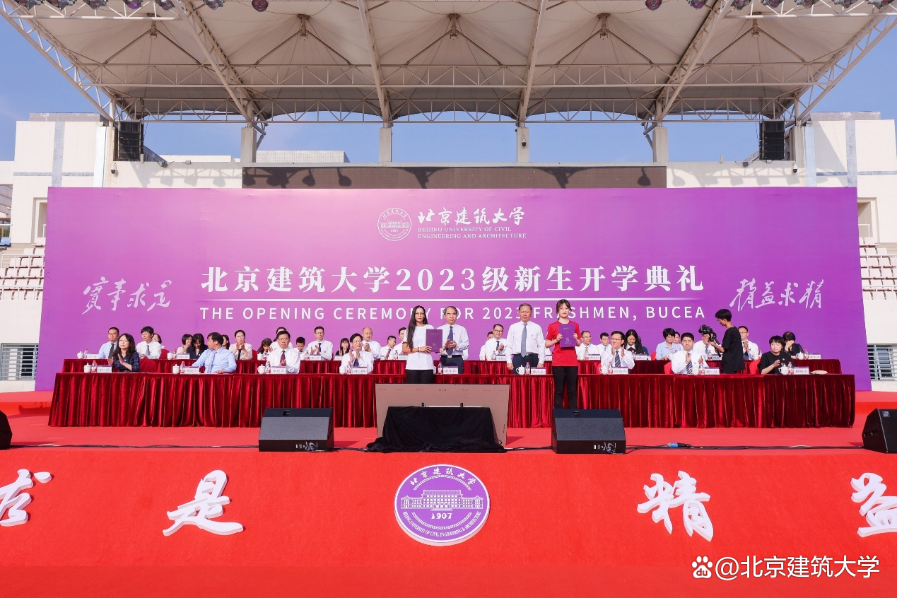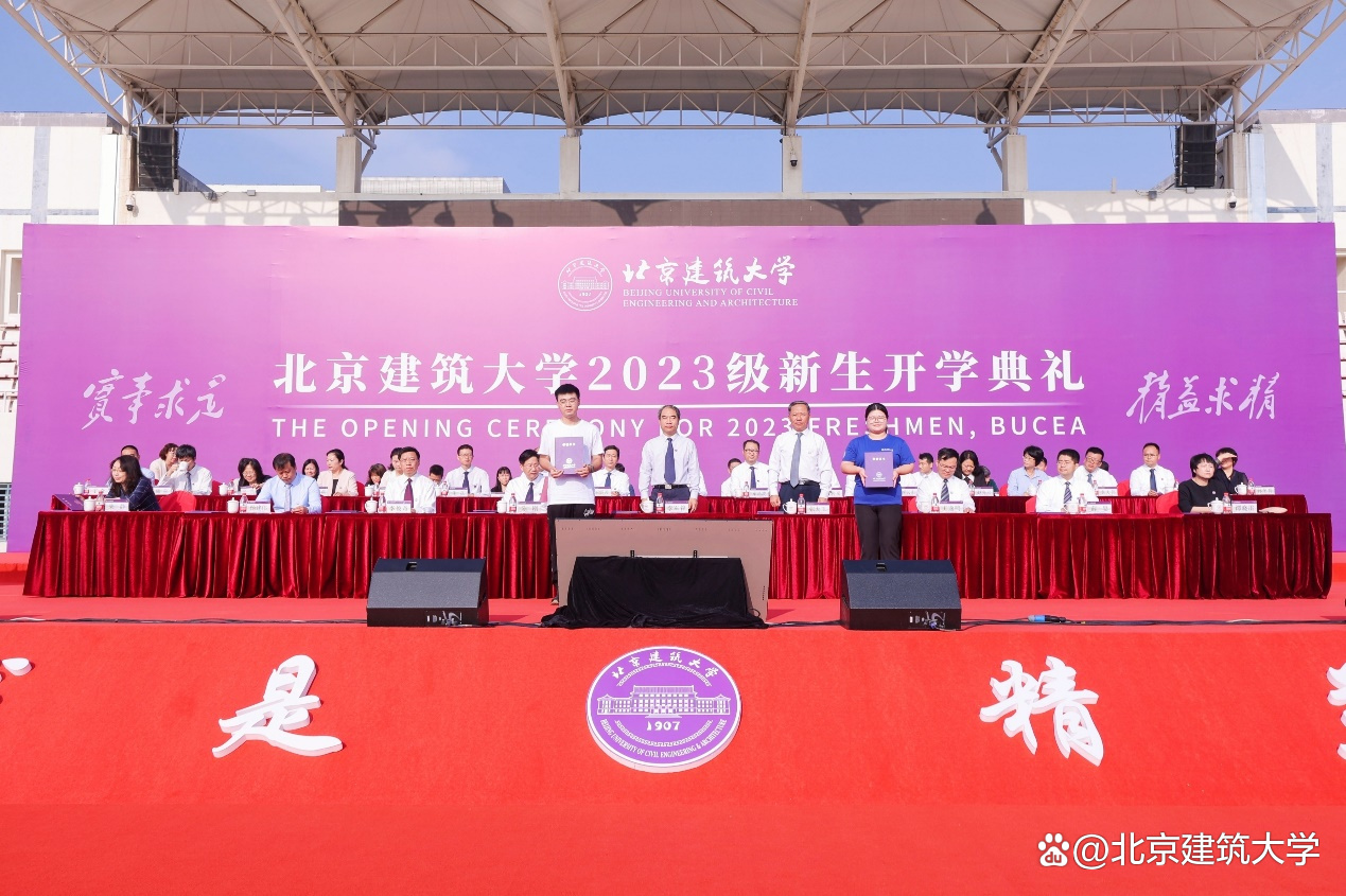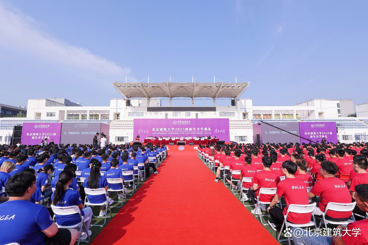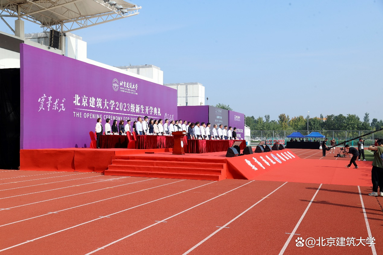 9月1日上午8时,北京建筑大学2023级新生开学典礼在大兴校区西操场隆重举行。校领导李军锋、张大玉、陈刚、王逸鸣、李俊奇、薛晏、杨建伟、朱静,优秀校友代表、2022年度全国三八红旗手、中建路桥集团建设发展有限公司联合党委书记、董事长谭晓雷,学校相关职能部门负责人、各学院党政领导及教师代表、2023级全体新生参加典礼。典礼由党委常委、副校长朱静主持。