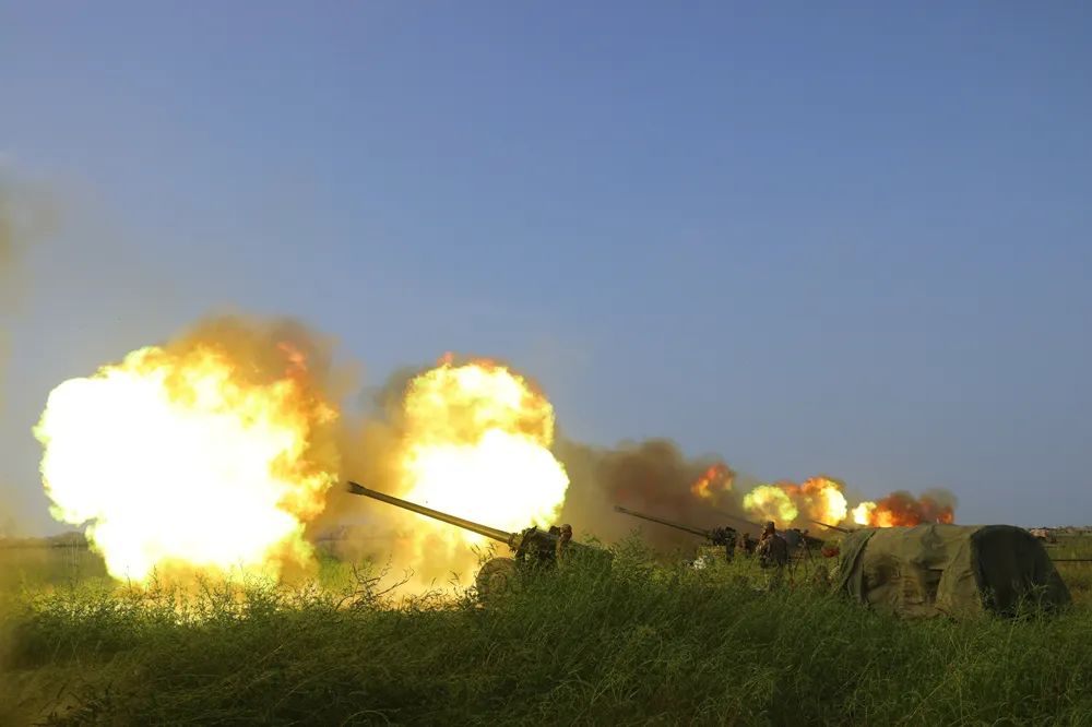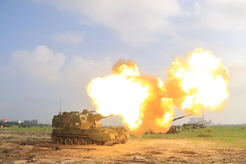 一发发炮弹伴随巨大的轰鸣声呼啸而出