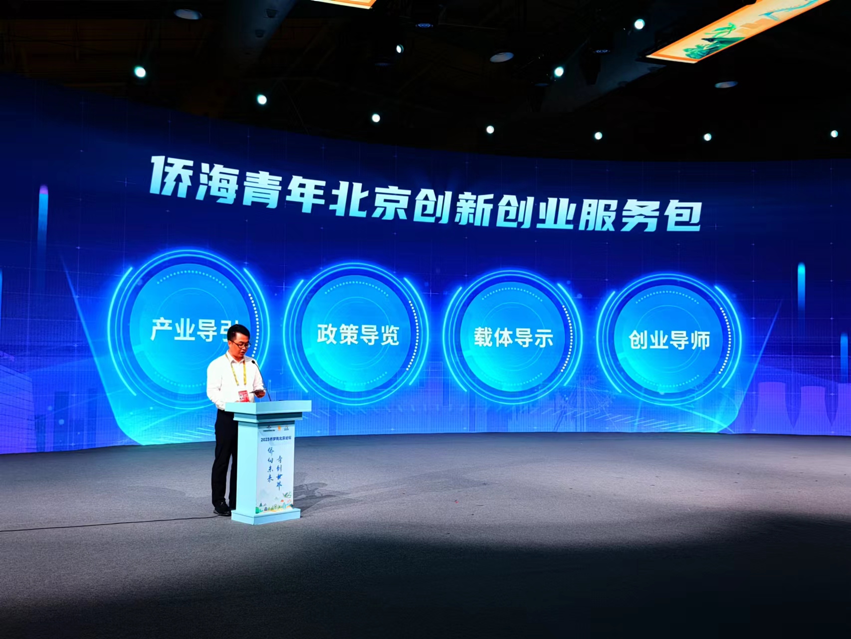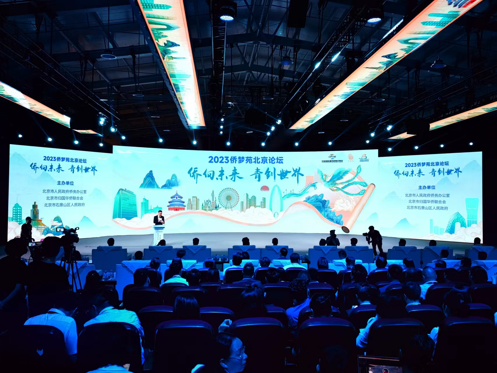 9月5日,“侨向未来 青创世界”2023侨梦苑北京论坛在首钢园服贸会10号展厅精彩亮相。本届论坛以“侨向未来·青创世界”为主题,由北京市人民政府侨务办公室、北京市归国华侨联合会、北京市石景山区人民政府共同主办。论坛采用“线上+线下”形式举办,“线下”主会场设在首钢园服贸会10号展厅,“线上”设立14个海外分会场,同时开设了线上直播频道,近万名海外嘉宾通过“云端”共同参与本场盛会。