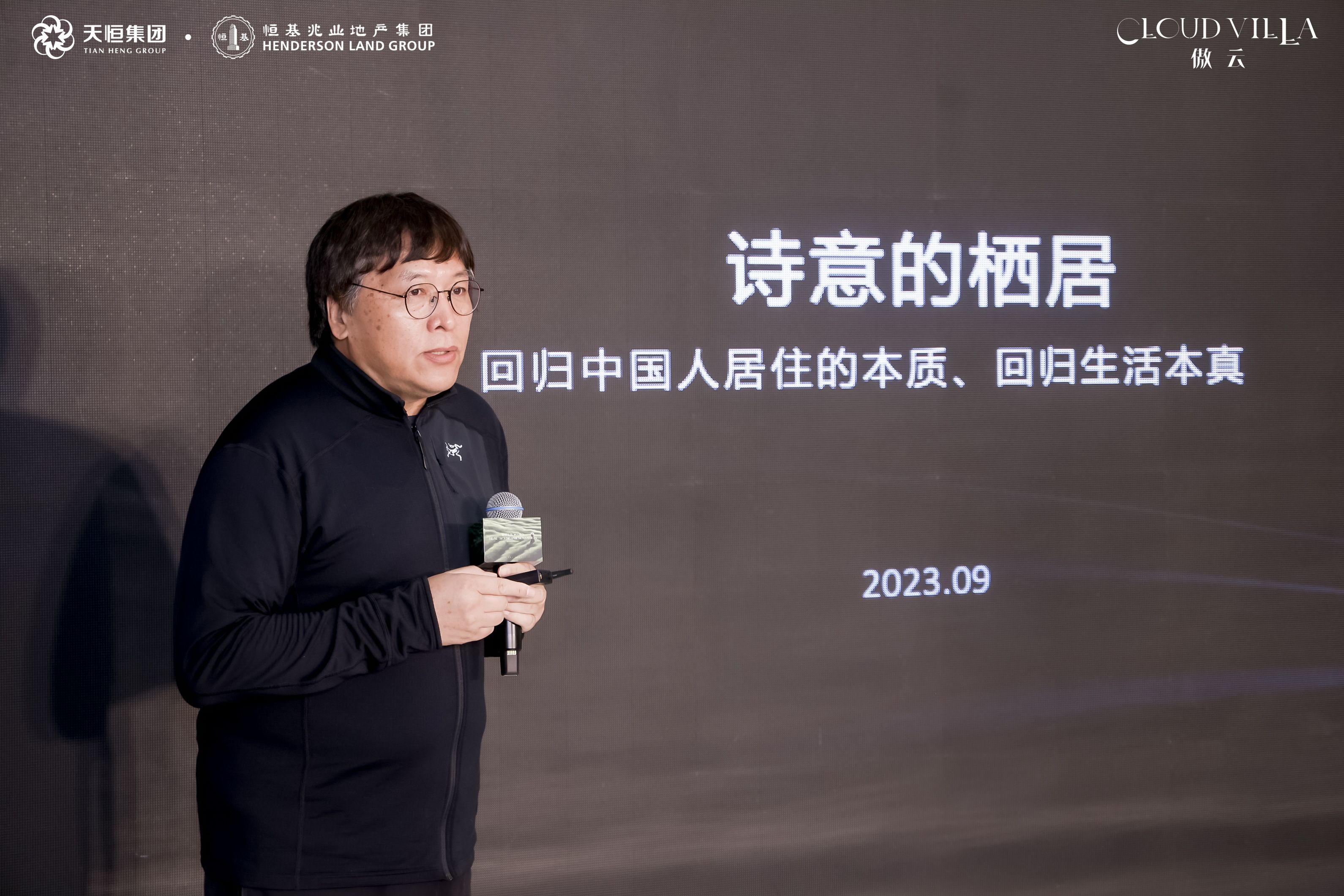接下来,奥雅设计创始人,董事长兼首席设计师李宝章先生,对东方文化传承与别墅产品内涵进行解读。他提出,中国哲学是自然的哲学,中国人居的最高奢华是精神充盈,傲云继承了中国传统“道法自然”的文化表达,回归景观最朴实的本真模样,在别墅中“诗意的栖居”。傲云所处的孙河,得天独厚的自然环境使其成为名副其实的城市中的“桃花源”,回家就是从城市中回到自己内心的家园。