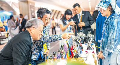 图为8月29日,在2023中国—东盟教育交流周上,参会嘉宾参观工艺作品。新华社记者 陶 亮摄 |