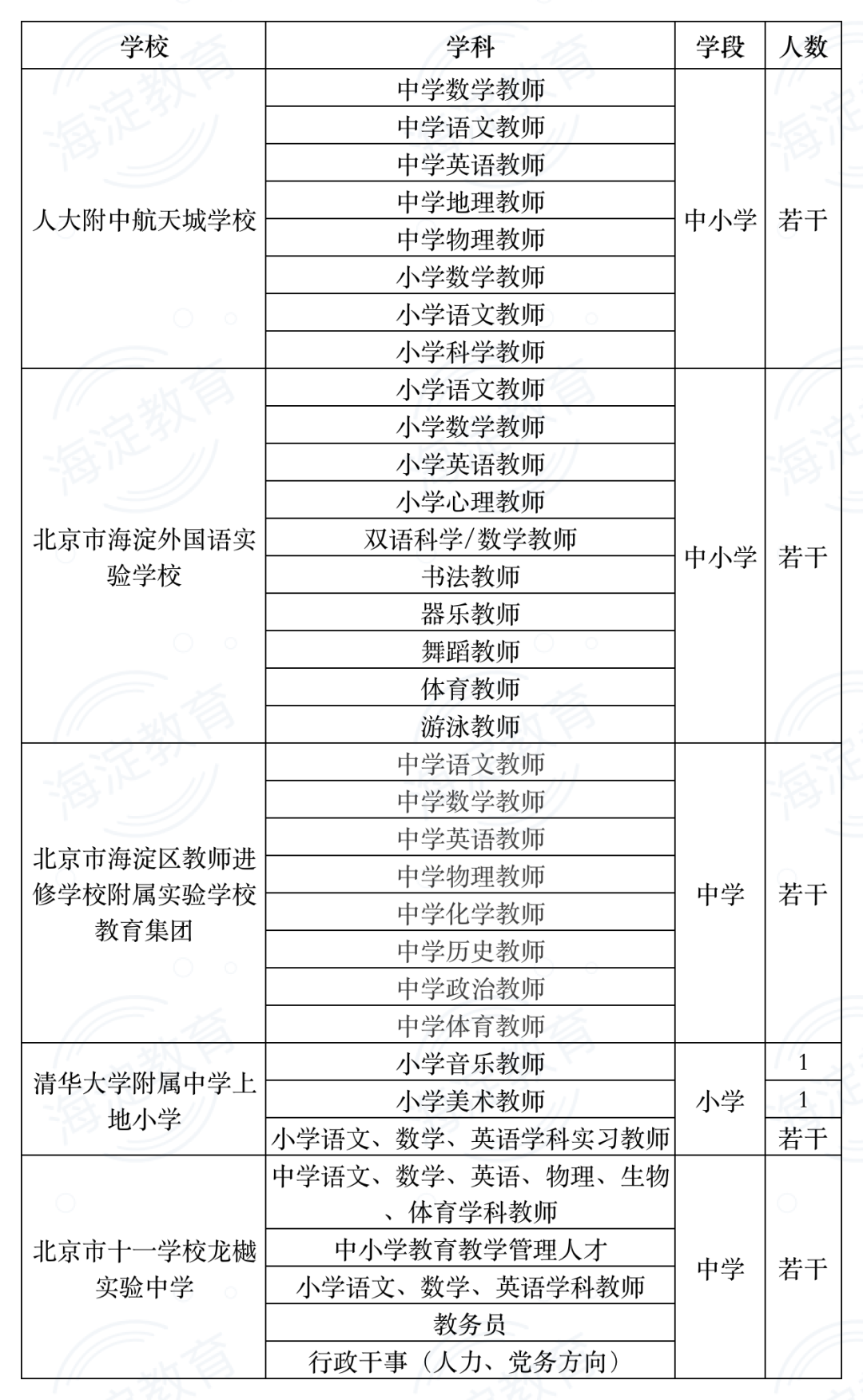 近日海淀又一波中小学、幼儿园发布招聘信息