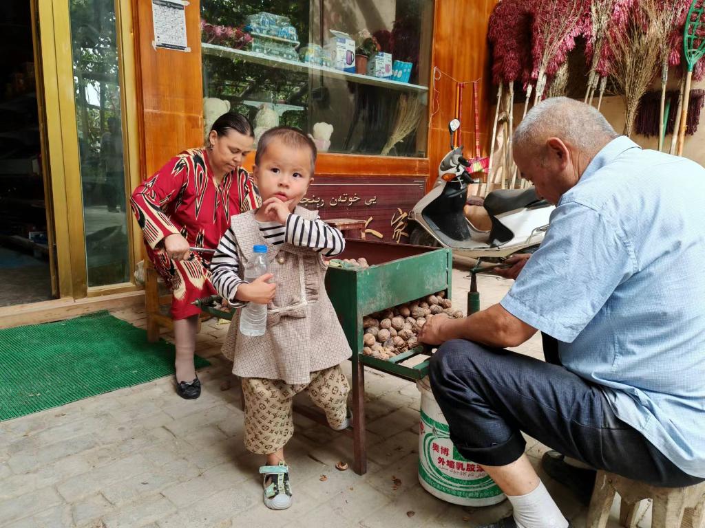 肉孜买买提家既有民宿经营,也从事干果生意,他告诉记者村里家家营生不一样,“邻居是古法榨油,旁边还有养鸽子的。”记者在村里看到,不仅家家户户有民宿经营,村里还引导村民根据自身特点,开展传统民俗展示表演吸引游客。