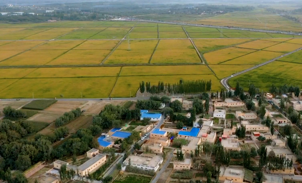 和田地区和田县罕艾日克镇稻香村俯瞰。(和田县融媒体中心供图)