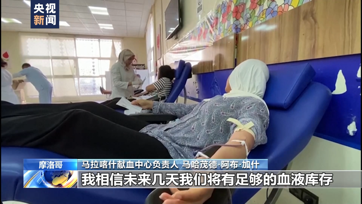 马拉喀什献血中心负责人马哈茂德·阿布·加什:健康中心和医院的伤员急需血液。我们昨晚号召大家献血,正如你9日一大早就看到的,前来献血的人非常多,这是一个很好的迹象。我相信未来几天我们将有足够的血液库存。