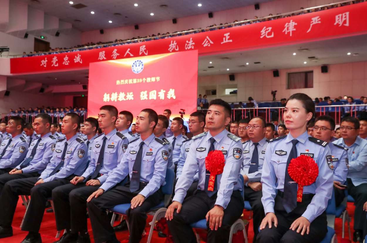 近日,北京警察学院举行2023年度教师节表彰大会。会上宣读了表彰决定,与会领导为年度优秀教师、优秀教育工作者代表以及在全国高校创新大赛中获奖团队及个人代表颁奖。