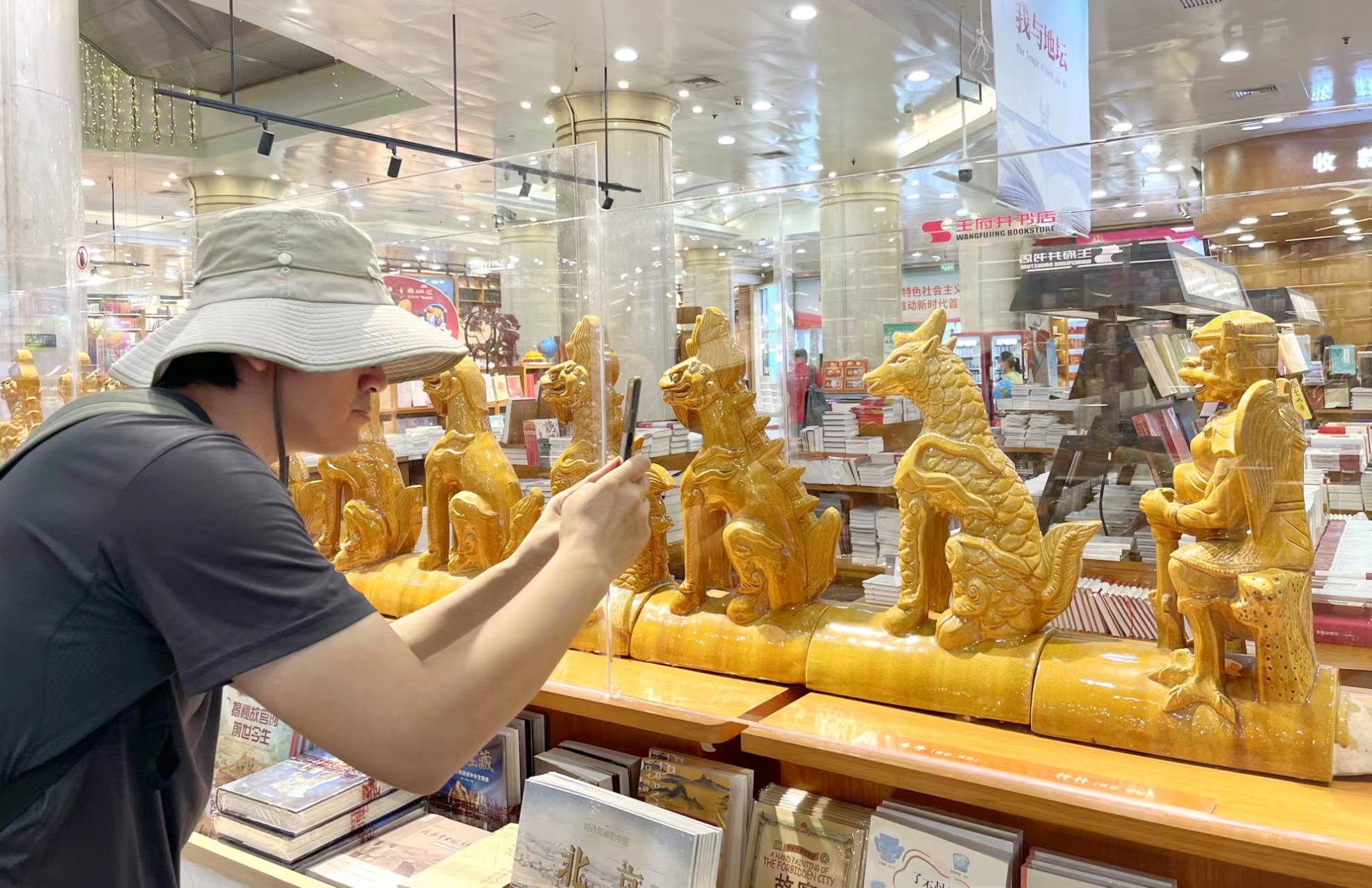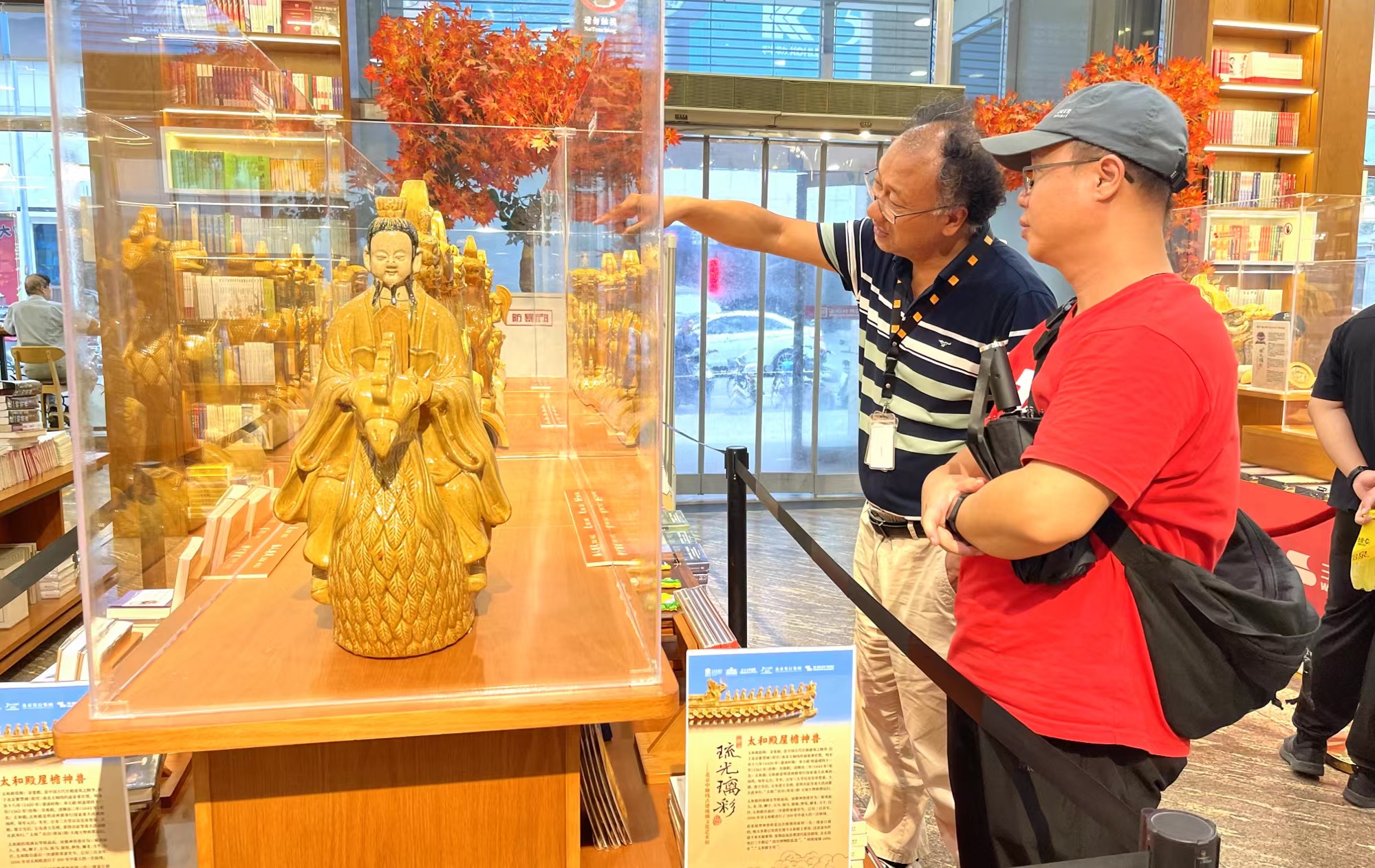 近日,作为“我与地坛”北京书市分会场的王府井书店在店内一层特别举办“琉光璃彩”北京中轴线古建筑琉璃文化艺术展。