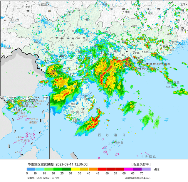 明后两天,“海葵”残余涡旋继续缓慢西移,西南季风气流及水汽条件减弱,华南强降水逐渐西移减弱,但广西沿海、广东西南部沿海等地部分地区有暴雨或大暴雨。