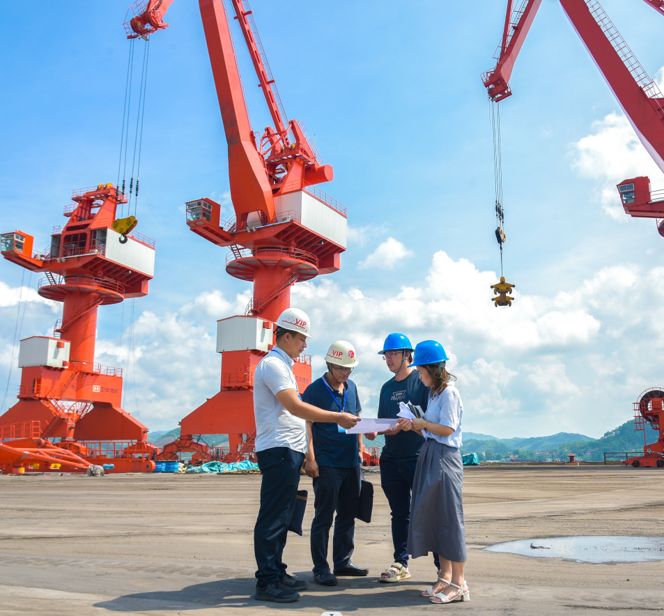 在广西梧州,市纪委监委驻市开发区纪检监察组紧盯区内重点工程项目建设开展专项监督检查,严肃查处其中的腐败和作风问题,护航重点工程项目建设。图为纪检监察组干部在一码头工程了解有关情况。林志清 摄