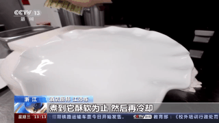 酒店厨师 江沛栋:白切两头乌,它选自猪的五花,煮一个半小时,里面放点葱、姜、花椒、八角、盐就可以了。然后文火煮一个半小时左右,煮到它酥软为止,然后再冷却。吃金华“两头乌”,白切是它最能保持原汁原味的一种口感。