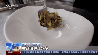 酒店厨师 江沛栋:金华的雅畈土黄牛是比较有名的,它的肉质是比较紧,而且鲜嫩,汁水比较丰盈。再加上金华本地特有的白辣椒在一起炒,鲜辣滑爽汁水多,所以这道菜在金华当地是比较受欢迎的。