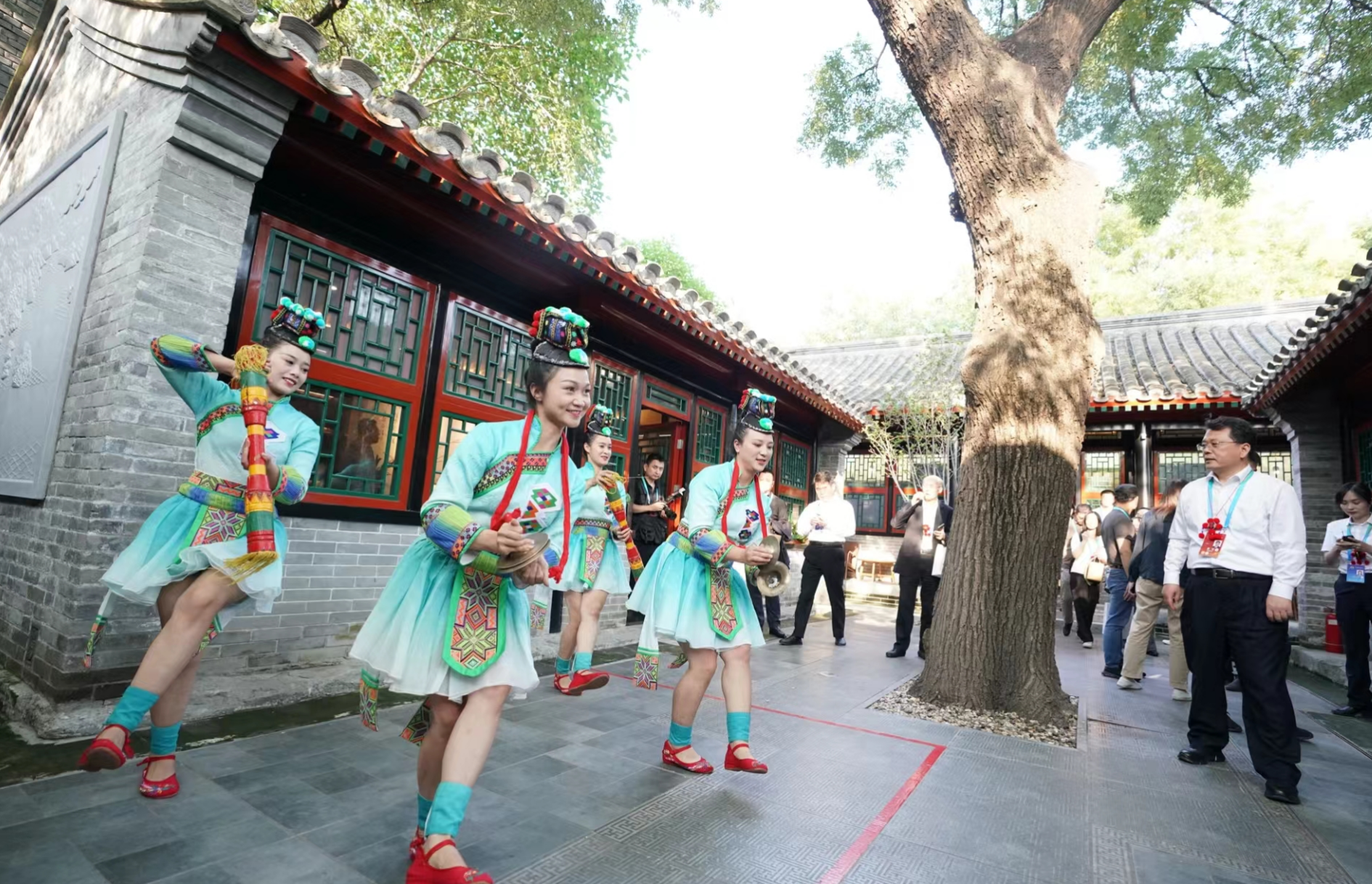 青云胡同,三里河畔,好戏在颜料会馆上演:绛州鼓乐《牛斗虎》兼具力量与美感,舞蹈与民乐三重奏《春江花月夜》悠扬婉转,京剧《贵妃醉酒》选段唱尽古今悲欢……观摩第三站,精彩的表演引得嘉宾们掌声不断,昔日会馆的繁华盛景重现。