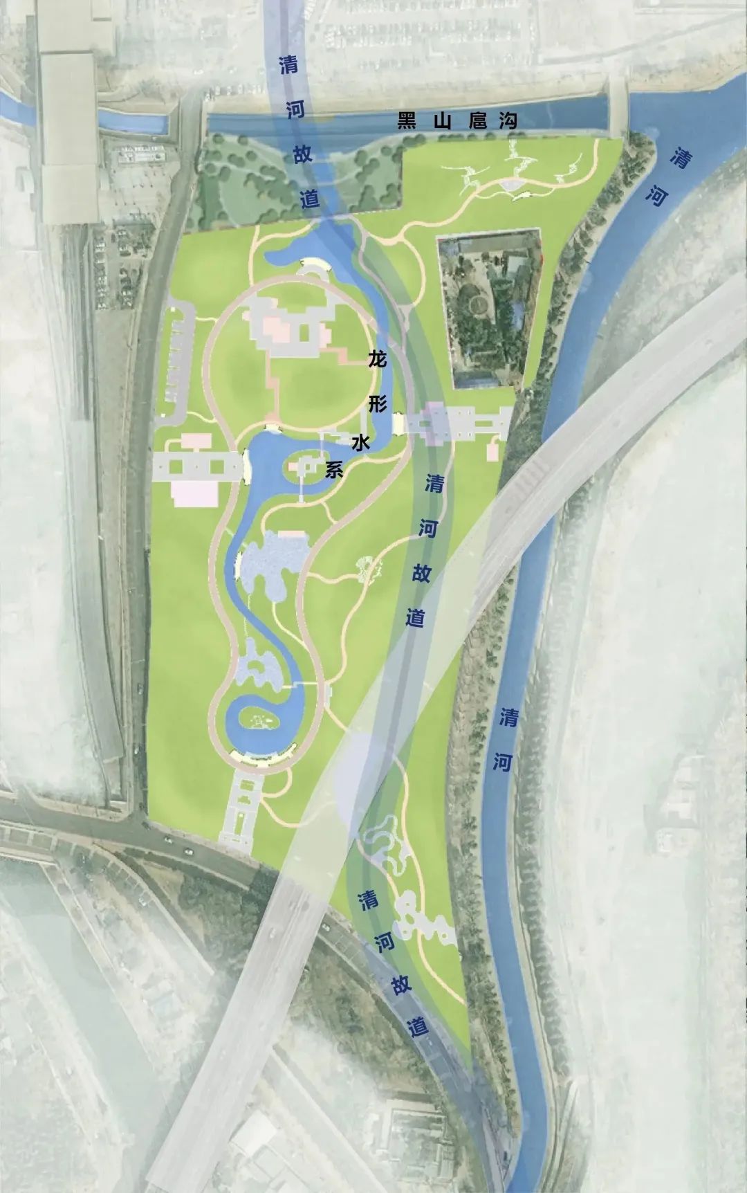 通过构建龙形水脉,恢复历史上部分清河故道路由,延续清河水系历史,重拾故道水文记忆。