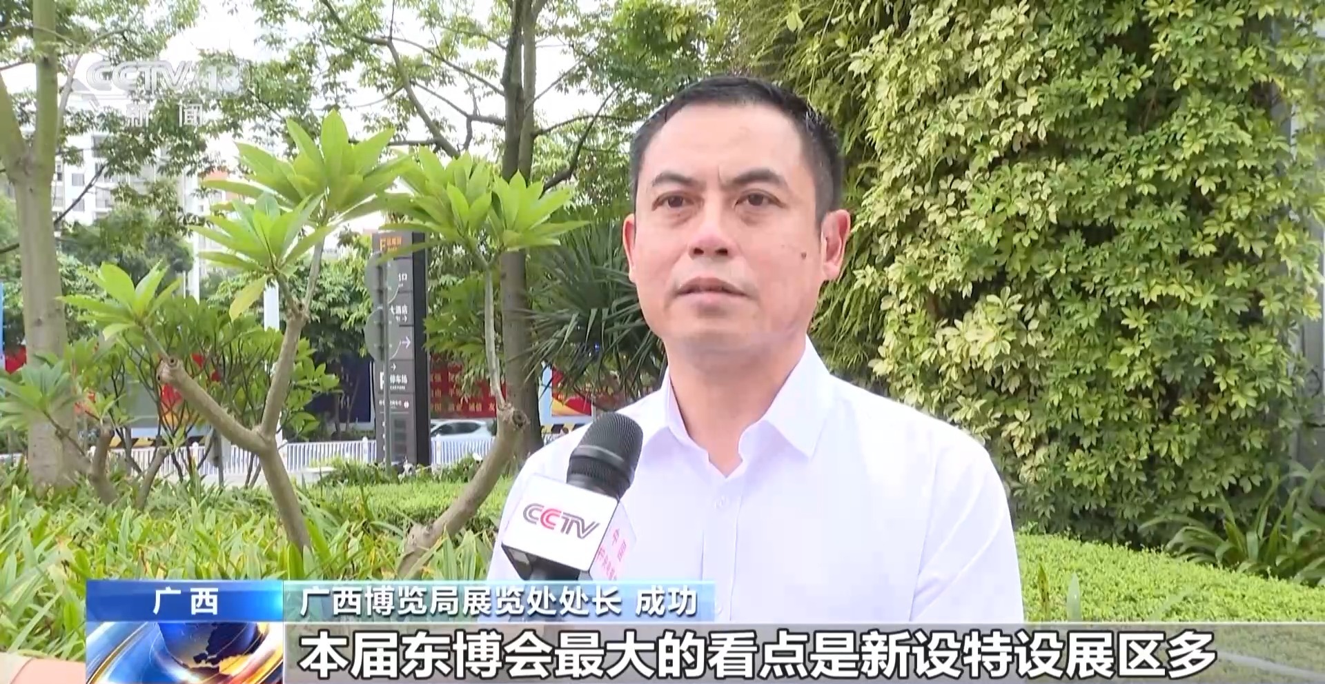 广西博览局展览处处长 成功:本届东博会最大的看点是新设特设展区多,同时特别设立东博会、峰会20周年成果展区。国外参展企业来自45个国家,目前展位搭建全部完成,展品全部到位。
