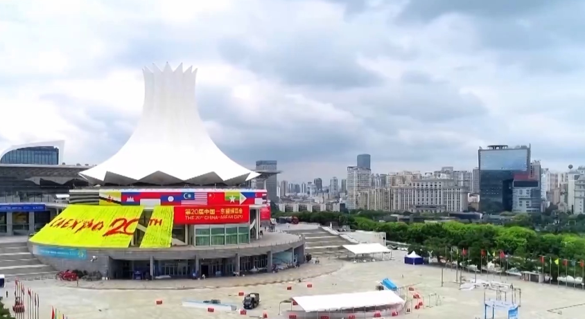 在南宁国际会展中心,地标性建筑“朱槿花”已装饰一新,建筑两侧挂满了以黄色为主色调红色为点缀的彩带,突出显示着第20届东博会的字样。在展馆的各个展区,工作人员正进行布展收尾工作,最具特色的“魅力之城”展区的布设也进入冲刺阶段。