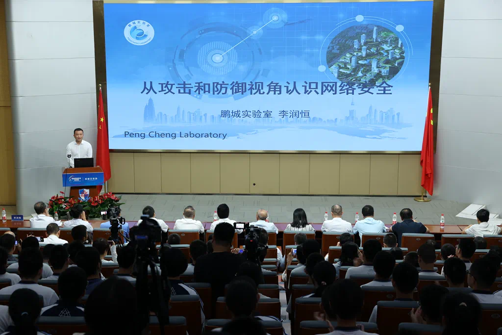 与此同时,网络安全宣传也在各个校园里如火如荼地开展。在福州三中,鹏城实验室新型网络研究部网络平台所主任设计师李润恒为师生们带来一场专题讲座,从攻击和防御视角来认识网络安全。