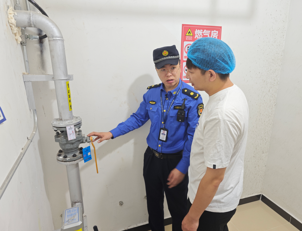 “经历暑期设备长时间未用,在使用过程中如出现一些小问题要及时联系燃气公司进行检修。”执法人员提示幼儿园负责人后厨燃气间不得堆放纸箱等易燃易爆物品,燃气管道不能悬挂重物以防造成管道损坏破裂、连接处变形,燃气报警器要注意做好日常维护,发现问题及时维修,保证其处于正常工作状态。