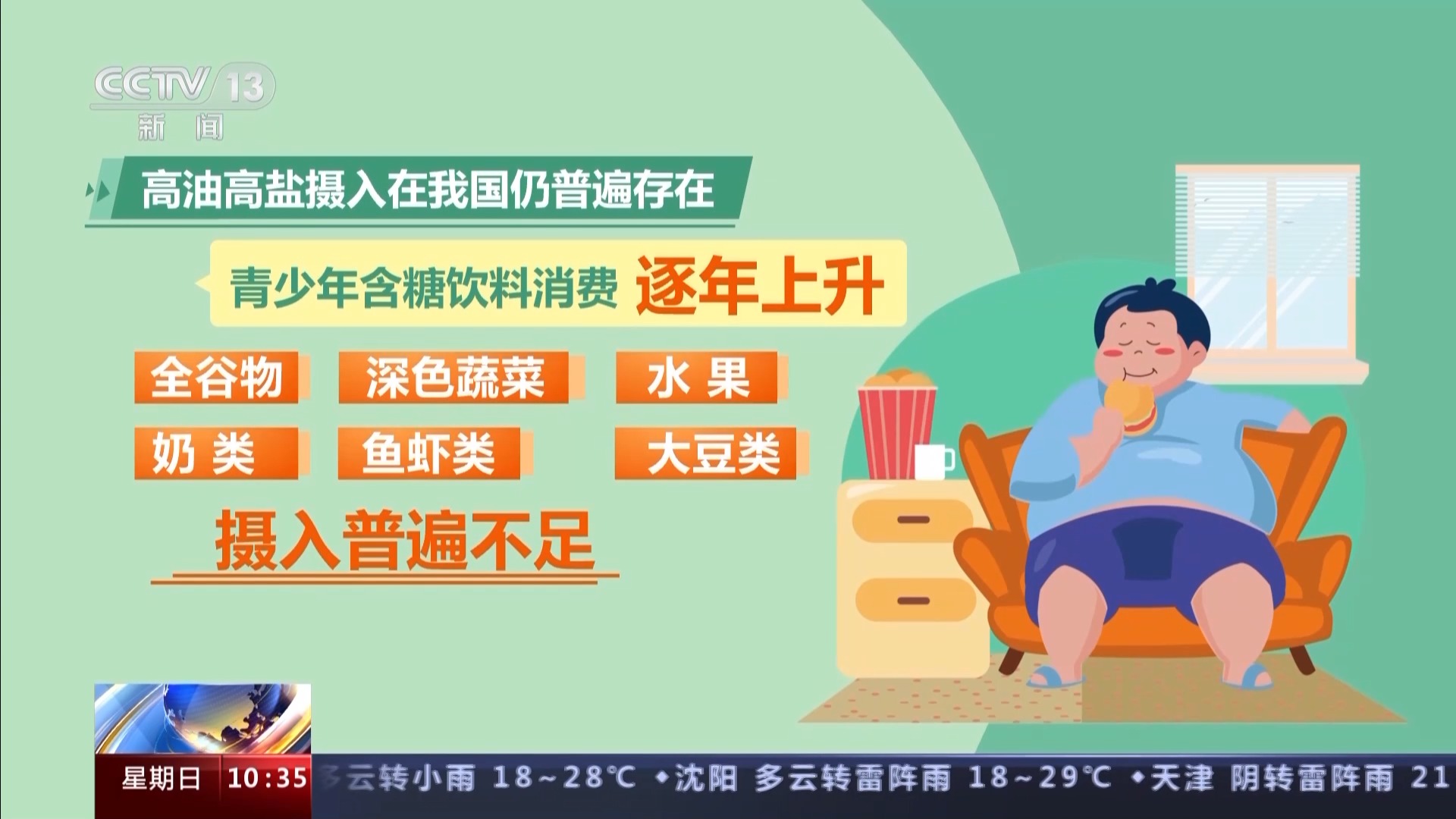 高油高盐摄入在我国仍普遍存在,青少年含糖饮料消费逐年上升,全谷物、深色蔬菜、水果、奶类、鱼虾类和大豆类摄入普遍不足。